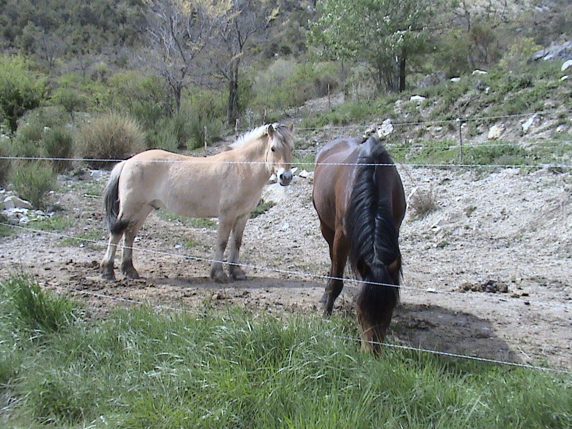 | Dire merci | Mardi, j'ai réuni mère et fille : Lien Lien Helvétie est devenue très mince, ah, si elle pouvait rester comme cela avec juste plus de muscles! Je l'ai pas mal sortie et elle m'a étonné, elle est vraiment en forme et a même fait une balade de 5 heures le week-end dernier sans aucun problème. Depuis, c'est elle que mes amis cavaliers veulent voir et pas mon mérens. Elle est beaucoup plus sympa que lui... J'avais un peu peur pour ses pieds (nus), mais elle est passée partout ![]() On m'a passé une selle "normale" la Wintec Wide ne lui va pas du tout, même avec l'arcade blanche! |