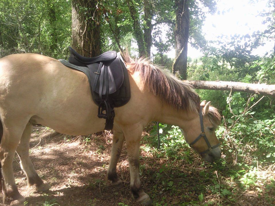 | Dire merci | je viens d acheter la daslo dressage, taille 17, pour mon petit fjord (arcade jaune en place) -elle ne lui va pas trop mal- par contre elle est trop en avant mais je n ai pas trop le choix pour le moment avec son gros bidou- là il est au regime- ![]() |