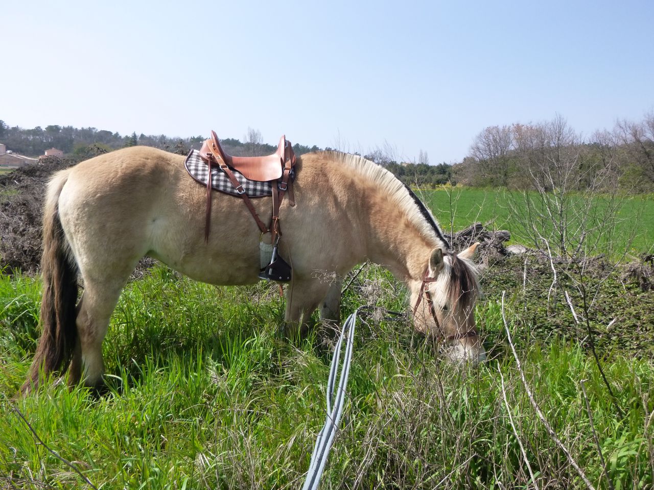 | Dire merci | Euh oui c'est quasiment la seule Fjord à crinière longue! Sur les 17 que nous étions à la rando il y en avait un autre avec une crinière longue mais moins que celle d'Indra quand même. Sinon tous en brosse! Pour le coup, le matin ma grosse était super motivée. Bon l'après-midi avec le contre coup de la pause de midi elle était un peu naz, mais on voit qu'elle se plait là et qu'elle est bien avec les autres Fjord. Elle était même en tête parfois, pourtant ça n'est pas son genre. Oui pour le poulain c'est sur que tu ne peux pas tout garder. Enfin si c'est une copine qui l'achète, tu pourras encore le voir. |