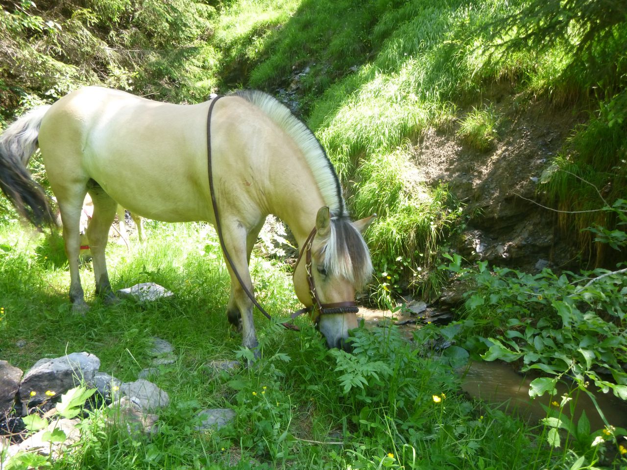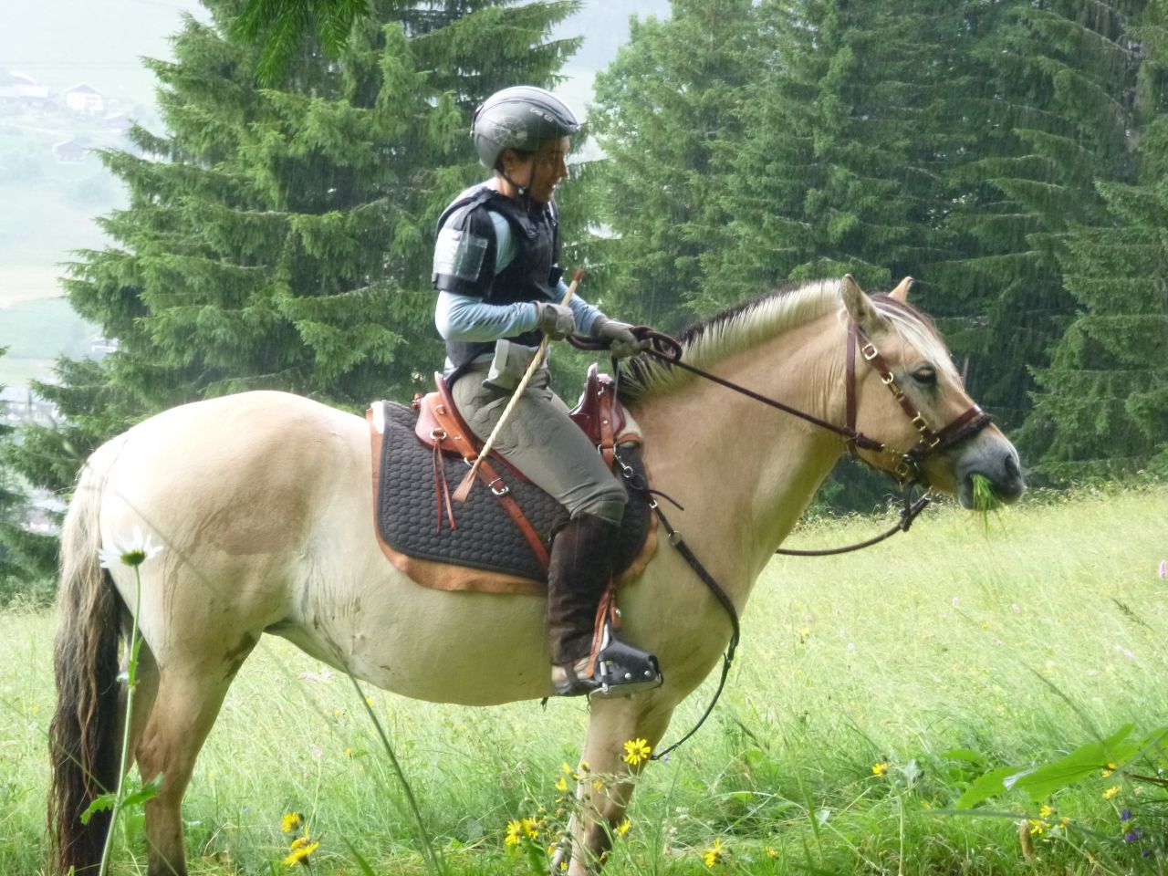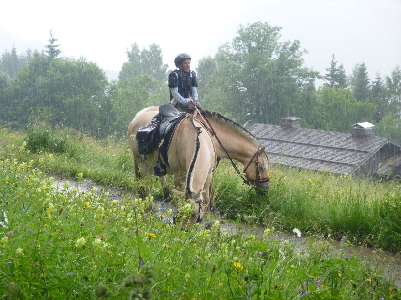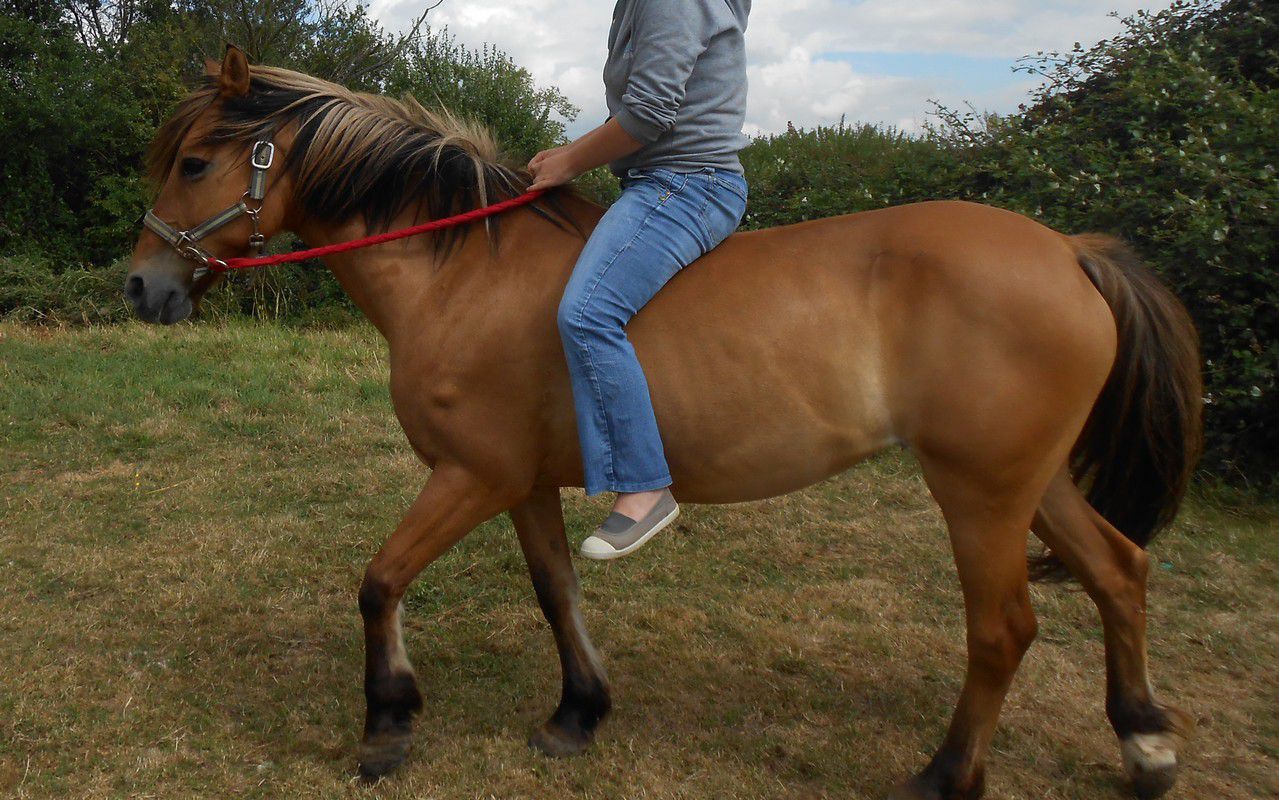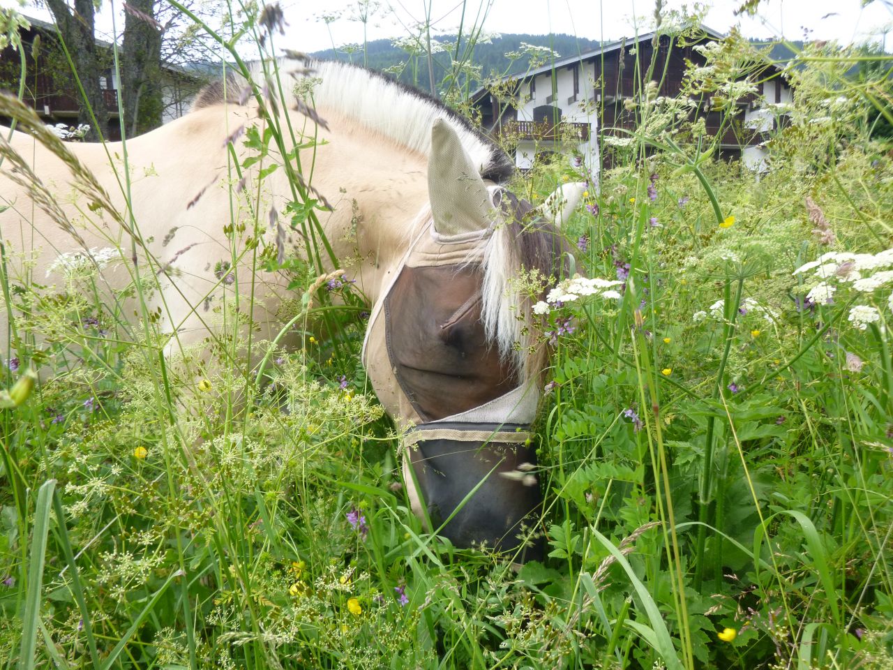 | Dire merci | Coucou à toutes/tous ! Je vous avez abandonnés le temps des vacances, mais de retour, je lis plein de bonnes nouvelles et vois que vos poilus sont bien en forme. Nous avons emmenés les nôtres à la montagne en Haute Savoie...et ils en ont bavé avec les dénivelées !!! Les vaches et les VTTistes ont terrorisé ma belle...enfin surtout les vaches, les VTTistes elle s'y est faite assez vite, mais alors les vaches !!! A l'arrivée nous nous dirigeons vers le pré que l'on met à notre dispo pour le séjour et là, que découvrons-nous, un magnifique pré avec des herbes hautes jusqu'au poitrail, des fleurs, bref le rêve d'un fjord et le cauchemar de son cavalier qui pense aussitôt "adieu, régime... prise de poids, fourbure...". Mais non, tout s'est bien passé, heureusement. Je ne vous dis pas la tête des poneys au retour chez nous dans le Drôme où l'herbe est déjà bien rase et grillée... Quelques photos pour vous remercier des vôtres... Le pré de rêve... ![]() Sous la pluie... ![]() Difficile de tenir la miss la tête en l'air le temps de la photo... ![]() ![]() A + |