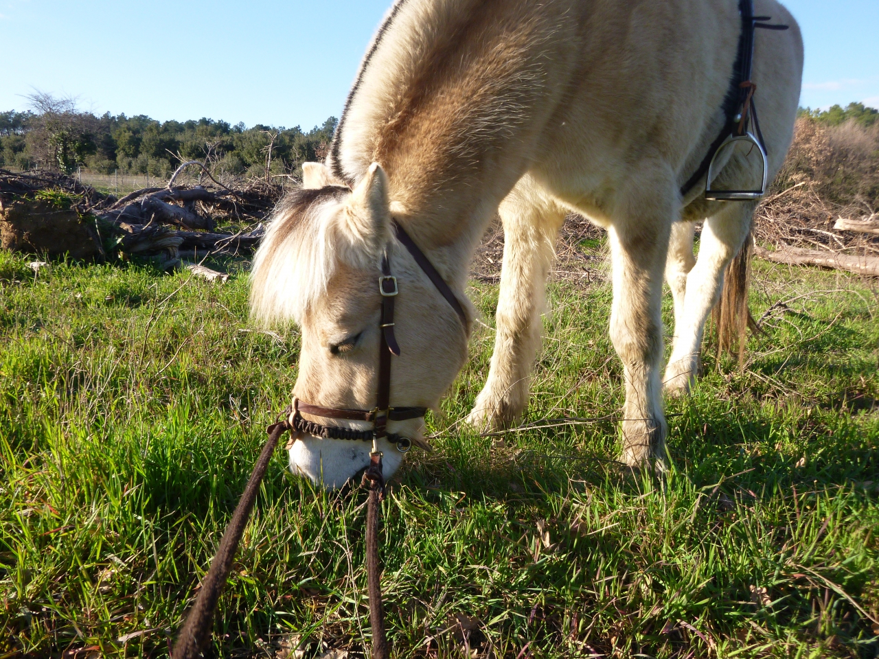 | Dire merci | laprincedu88 : Oh oui, le soleil a bien permis de sécher le paddock. Il est encore un peu chaotique par endroits...mais il est SEC ! Les miens sont toujours au foin, car rien à manger encore dans le pré d'hiver où je les mets pendant la journée. Chaque année, j'ai l'impression que l'herbe ne poussera plus tellement elle est rase dans les parcelles actuellement fermées et puis d'un coup cela se met à pousser et il y en a bien assez pour occuper mes gros qui gardent toujours un peu de foin au paddock pour la nuit. Pour monter à cru, si on associe mon petit 1.55 m et ma souplesse (on n'a pas 20 ans pour toujours :cry ) c'est juste pas possible...alors le surfaix me sauve bien la mise .A + |