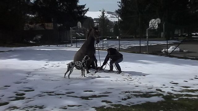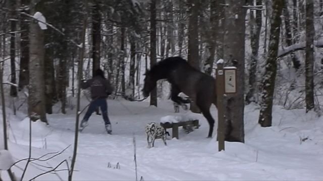 | Dire merci | Tu as une super complicité avec lui, c'est vraiment génial, surtout avec un cheval qui n'est même pas castré, c'est vraiment très bien, je suis contente pour toi.![]() |
