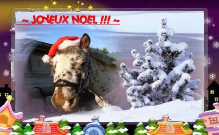 | Dire merci | merci siouxx, elle dechire ta photo!! J'ai pleins de trucs a vous raconter et des très belles photos à vous mntrer, malheureusement, cet aprem, je n'ai vraimentpas le temps (c'est ça quand on prefere passé la journée avec son cheval plutot que de preparer le reveillon )Promis, je fais ça pour ce week end! Joyeux noël a tous!!!!!! |