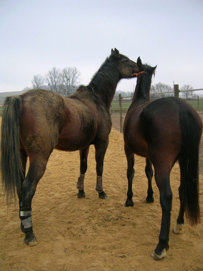 | Dire merci | Sibelius fais gaffe ils bouffent tout ce qui passe à portée de dents... la dernière fois j'ai cherché 10 moin mon tapis que j'étais sure d'avoir laissé sécher sur la porte du Jab... C'est Rosario qui l'avait pris et planqué dans son box Qd je suis sur son dos, qu'il est à l'arrêt (en fin de séance car au début j'ai du mal à l'avoir arrêté lol ) si je fais pas gaffe il essai de me piquer mon stick Pour les crins, Rosario a été rasé poulain, depuis ils repoussent tranquille. Il a des crins ondulés et assez épais malgré l'impression que ça semble donner en photo C'est super ils sont jamais emmelés (contrairement au Jab)![]() ![]() |