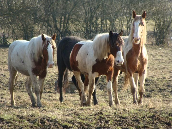 | Dire merci | c'est un genre d'élevage oui enfin, un peu particulier, les jumenst mettent bas au pré sans surveillance, les loulous grandissent à l'écarte dela civilisation, et ça donne des loulous bien dans leurs sabots en tout cas! il y a des croisés frisons dansle groupe, et la pie alezan je crois qu'elle n'a qu'un an et demie mais n'est pas demi trait. Si quemlqu'un est intéressé.... je vais vous mettre d'autres photos d'unpetit qui me plaisiat beaucoup aussi, vous allez craquer c'est sur!! |
