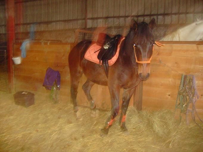 | Dire merci | merci muffy et pikie !! oui je pense comme toi il ressemble un peu a ton cheval!! peut etre que c'est la robe !! oui le orange lui va bien, je vais commander le filet bridon en orange sur ebay et un tapis camouflage range gris chez padd |