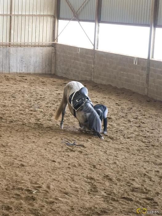 Alors aujourd'hui, je suis allé en cour avec mon Radja, pour se rendre en cour pas de problème, il a été pas mal (50 min) mais en cour qu'elle galère, il ne voulait pas travaillé avec moi, impossible de le garder au trot, plus de deux foulés, d'habitude c'est ma voisine "julizz" qui le monte en cour, plus d'expérience et moi il m'a viré une fois, donc depuis j'appréhende, il est super en extérieur mais la carrière, j'arrive pas et le stick je n'ose pas trop, coup de cul, saut de mouton, je n'ai pas encore une bonne assiette, je le monte que depuis 6 mois, comme il est assez fin j'ai plus de mal qu'avec les "trapu" fjord ou X fjord, j'ai appris dessus, je ne sert donc pas assez les mollets, j'y arriverai, mais quand ?