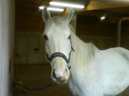 | Dire merci | Laure: En même temps, j'le savais hein, on en a parlé avec Pakret Cyberds, carabouille: Merci pour lui! Il s'appelle Trésor, c'est un SFxAA par Graal des Vernières, tout ce que je voulais en fait. Il a donc deux ans et demi, prendra trois ans en mars. Il est arrivé il y a un peu plus d'un an dans ma pension. Et depuis ma fois c'est que du bonheur. Bon il est un peu chaud parfois mais vu l'âge et la bête ... C'est un peu normal quoi!J'avoue, je suis pas du tout déçue de mon choix. Je l'ai vu à 6 mois, et j'avais l'impression d'avoir un mini-cheval en face de moi! |