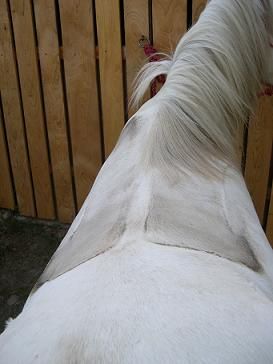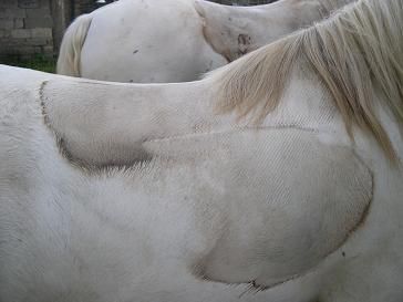 | Dire merci | Bé moi chui un peu embétée avec ma Cheyenne!! J'ai l'impression qu'elle repartit pas si bien que ça la pression, car toujours, un peu derriere le garrot, le poils sont + blancs (ma ju est aubère ) et ça fait une marque comme si je venais de monter a cru, j'essayerai de prendre ça en photo!! |