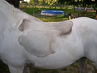 | Dire merci | Avec ce grand soleil et la chaleur que l'on a ces jours-ci, ma jument à enfin sufisement transpiré pour que l'on puisse voir les zones de contact. Je vous met donc les photos et j'attends vos commentaires![]() ![]() ![]() Petit rappel: je monte avec la selle freeform et un tapis Haf |