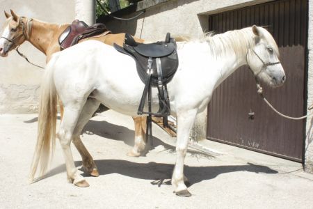 | Dire merci | seera , ma envoyée pour essai une startrekk confort shorty . je viens de faire 2 essais . le premier pour voir quinze minutes , le temps de trouver les réglages avec mes étriers K-val . trouver la bonne sangle etc ... le 2 ième 1 heure environ , pas , trot , et galop en montée puis descente abrut pour vérifié si la selle n'avance pas . pour l'instant je suis très sastisfait , belle selle , très confortable , s'adapte bien a ma jument camargue , avance un peu en très grosse descente , mais sans plus . très bien adapté à mes étriers K-val (la selle a deux anneaux attaches d'étrivières de chaque coté). les sanglons sont vraiment trop long , ils font le tour de ma jument (40 trop long) a couper si je la prend . demain essai sur 22 km sur du plat et bon terrain pour pouvoir galoper le plus possible , pour me rendre compte de ma position . l'année prochaine je reprend l'endurance sur une ou deux 60 km . pour info : avant j'avais une dune de GM , mais qui ne convenais pas a ma jument |