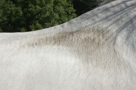 | Dire merci | argh....quel exercice difficile que vous me demandez là...et en plus sur un cheval blanc et les photosdeja, il me semble que la selle est trop en avant. Elle a avancé? En tout cas, vu la fin des cotes, tu peux la reculer de 10 cm, mais je distingue pas l'épaule... Après, pour les traces de transpi, tu as quelle arcade? Et ce que je discerne pas sur la photo, c'est que c'est sec a l'avant ou plutot humide et sec a l'arrière. Je suis desolée, mais c'est tellement dur à dire sur une grise |