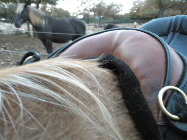 | Dire merci | Sinon, qqes photos de la balade d'une heure faite à rythme assez soutenu avec la selle sans arçon classique achetée 230 euros tout compris sur ebay: sa place en rentrant de balade: elle avait un ;peu reculé: vous la trouvez trop en arrière ou pas??????? ![]() ![]() Sinon, photos des deux côtés: on voit pas très bien, car il n'avait pas transpiré sous la selle,n et j'avais le tapis décathlon avec des matelassures pleines de coutures, alors on voit surtout les formes des matelassures Je réessaierai avec un chabraque tout simple, on verra vraiment mieux. On voit cependant des traces aux passages d'étrivières, mais les poils ne sont pas ébouriffés: ![]() ![]() N'OUBLIEZ PAS DE ME DIRE CE QUE VOUS PENSEZ DE LA PLACE DES SELLES !!!! |
