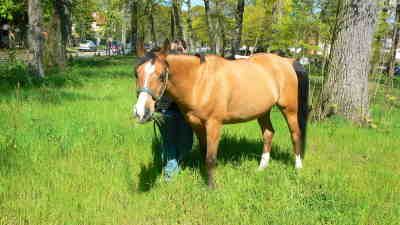 | Dire merci | alors j'en ai un et.....c'est une perle, souple equilibré, un caractere en or, facile, malin, joueur, il apprend tres vite, est doux et a un caractere de malin pour exemple, avec mon fils (5 ans) il est tres doux, il le suis partout, fait attention, avec ma niece de 14 ans son jeux c'est de lui foncer dessus a fond (la pauvre elle commence seulement a ne plus le craindre) ![]() avec ma mere qui avait peur des chevaux il a fait une approche discrete, bref un jour ou elle jardinais elle c'est rendu compte qu'il etait a coté d'elle et que finalement elle n'avait pas peur, avec elle il suffit qu'elle dise une fois recule il s'execute imediatement(comme si il sentait la fragilité). avec mon pere copain copain c'est pour tous ca que je l'aime tant, il est roublard, frimeur, mais docile et tellement gentil, par exemple il n'a jamais essayer de me mettre par terre!!, si en faisant le souave il vois que je desequilibre, il arrete de suite, une perle quoi. pour les photos , il y en a une dans mon profil ![]() |