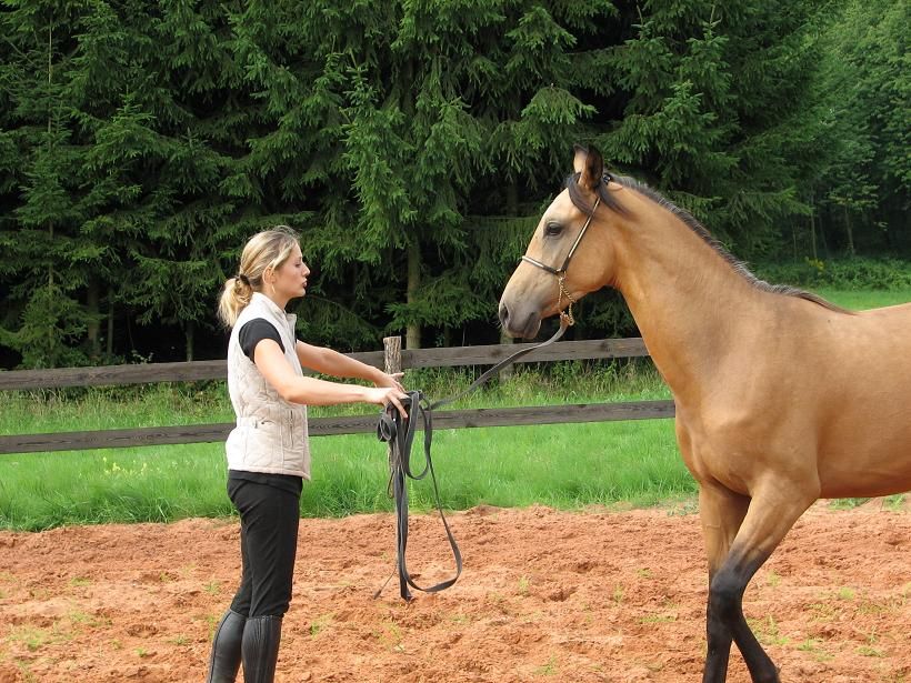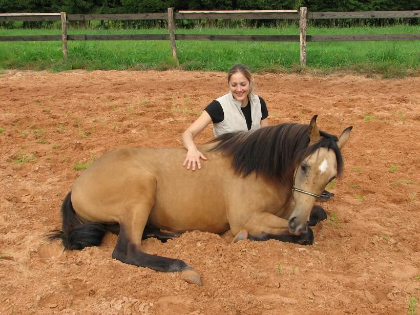 | Dire merci | C'est vrai qu'en général ça donne de bons chevaux. J'avais acheté ma jument pour l'endurance à l'origine, mais elle n'aime pas trop l'extérieur , par contre elle est très douée et aime le dressage. |