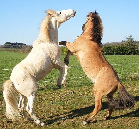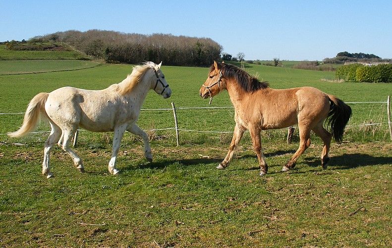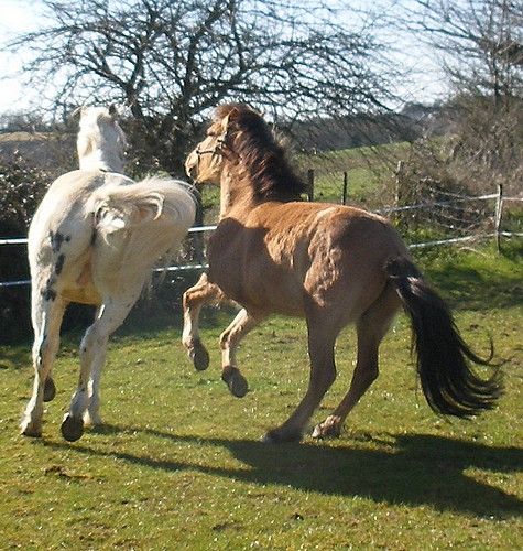 | Dire merci | Il saute sacrément bien ton Loulou Sheytana ! C'est marrant on dirait qu'il regarde les barres à chaque saut ![]() Voilà mon petit Q, Quaprice. ONC né en 2004, plus ou moins 1m40. ![]() Je l'ai depuis novembre 2008. Il a été débourré l'été 2008, et entre son débourrage et son achat, il a fait ou mois ou deux de club, en reprise débutant. Autant dire que le travail n'était pas très avancé ![]() Quand il est arrivé chez moi, déjà, il était moche ![]() ![]() ![]() Et en plus il était peureux, craintif, très sensible et réactif, toujours à fleur de peau. On avait beaucoup de difficultés à l'attraper au champ et il paniquait au montoir, il partait au trot avant qu'on se soit assise sur la selle ... Selon le moniteur a qui on l'a acheté, il a été débourré "à la dure" chez un marchand. Les débuts ont donc été dur, il n'avait aucune confiance en nous, on ne pouvait pas lever le petit doigt sans qu'il nous regarde avec des yeux exorbités. Aujourd'hui, il ne réagit plus à ça : une 1ère victoire ! [obj]http://www.youtube.com/v/Imfdlb5MYsE&hl=fr&fs=1&[/obj] Au début, avec Kim mon autre poney, il s'effacait tout le temps mais maintenant il ne se laisse plus trop faire : [obj]http://www.youtube.com/v/LaLkGZfyPLU&hl=fr&fs=1&[/obj] Quelques photos au champ où ils s'amusent : ![]() ![]() J'aime bien celle là, on dirait qu'il me nargue l'air de dire "Tu m'auras paaaaas !" ![]() Il est souple quand il veut ![]() ![]() Croche patte ! ![]() Non ils ne se sont pas foncées dedans ![]() Total synchro ![]() ![]() ![]() Il se laisse pas faire! ![]() |