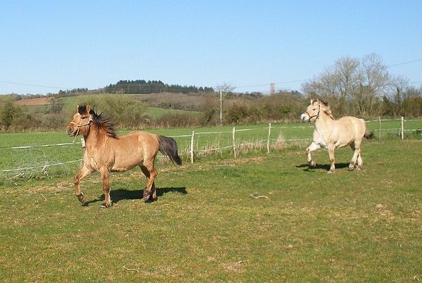 | Dire merci | Suite : Monté, sur la le plat, ça n'a pas toujours été facile, bien au contraire. 1ère séance dans la carrière ... il m'embarque dehors au galop, bonne entrée en matière ! Pendant une dizaine de cours il n'était pas à l'aise dans cet environnement ( alors qu'en extérieur il est super ), mais maintenant c'est bon ! Il est toujours un peu raide à main gauche, il a toujours la gueule en l'air ... Mais on a le temps de s'améliorer ! Voilà ce qu'on maitrise maintenant : Cession à la jambe : [obj]http://www.youtube.com/v/7Hz33dowAdA&hl=fr&fs=1&[/obj] Reculer/galop [obj]http://www.youtube.com/v/D7pO5MQ7GhM&hl=fr&fs=1&[/img] Départ au galop propre du pas : [obj]http://www.youtube.com/v/vcPrhX84UzU&hl=fr&fs=1[/obj] Quelques photos en vrac : ![]() ![]() ![]() Contre épaule en dedans : ![]() ![]() ![]() ![]() ![]() ![]() ![]() A l'obstacle, avant ça ressemblait plutôt à ça : ![]() ![]() Ou bien souvent aussi à ça : [obj]http://www.youtube.com/v/nEUYL5C6Cxw&hl=fr&fs=1[/obj] Mais maintenant c'est plus comme ça ! Bon le début est pas terrible, mais la fin est pas mal ![]() [obj]http://www.youtube.com/v/V5SMtalDhCI&hl=fr&fs=1&[/obj] ![]() Un peu de saut en liberté : [obj]http://www.youtube.com/v/QeDGLz7co58&hl=fr&fs=1&[/obj] [obj]http://www.youtube.com/v/AShjZA4Q_a0&hl=fr&fs=1&[/obj] [obj]http://www.youtube.com/v/pyU8--tL6gA&hl=fr&fs=1&[/obj] En extérieur, ça s'est toujours plus ou moins bien passé. Sa première "rando" et bain de foule, je crois que c'était un des plus calmes ! ![]() Le gros Fjord c'est mon autre poney, Kim. Il était monté par ma mère ce jour là. ![]() ![]() ![]() Dans la rivière, qu'il passe comme un chef : ![]() Avec ma mère : ![]() Même pas peur du tracteur ! ![]() Et puis je m'amuse à cru aussi ![]() [obj]http://www.youtube.com/v/FDf-ipO8XkQ&hl=fr&fs=1&[/obj] Voilà je crois avoir fait le tour de la bestiole |