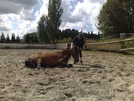 | Dire merci | tocco a été desensibiliser aux truc basiques, mais la chambriere jamais, et j'ai beau lui claquer deriere les fesse il s'en fiche. mais a la longe ya de l'amelioration aussi. sauf que comme d'hab j'en ai trop demandé et il s'est enfui, mais ca avait bien commencé après une aide exterieur je n'en ai pas, et je ne pourait pas en avoir le mettre avec d'autre chevaux j'essaie de voir comment je pourait faire mais c'est plutot compliqué. j'ai trouvé un dada tout seul dans mon village (il a fait ami ami avec tocco direct d'ailleurs), qui est en grand manque de relation social, j'ai pas envie de m'imposer en mettant mes deux chevaux dans les pré qu'elle loue (surtout que ce sont de très petites parcelles) mais je pourrait mettre son cheval dnas mon grand pré d'été, mais vu comme l'herbe manque en ce moment et que l'hiver arrive, ca ne va pas etre possible, il n'y a qu'au printemps ou je pourait penser a cela. sinon je pense que pour le débourage je l'emenerais dans un club pour etre encadré, sinon je sens le fiasco |