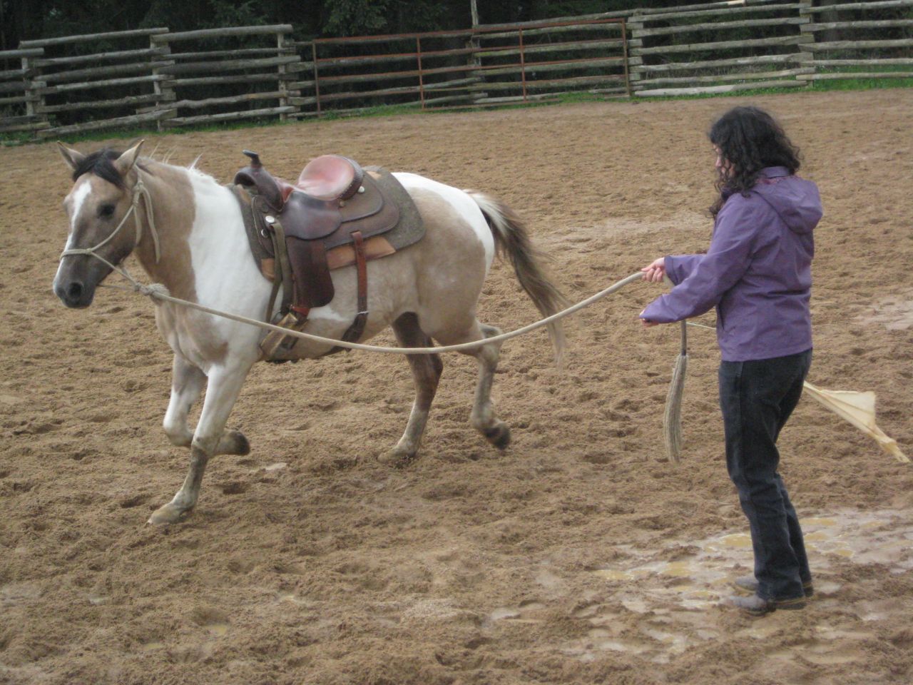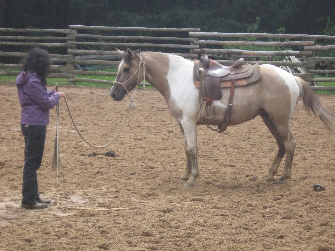 | Dire merci | Fin Mars, apres un mois de débourrage, premiere visite a Tanka depuis que je SAIS qu'elle sera ma future monture [url=https://www.1cheval.com/membre/services/photos/images/62450.jpg] ![]() [/url] Je la vois pour la premiere fois au travail a pied et monté avec son entraineur. Il en est tres content, elle est super gentille, confortable et apprend vite Puis suite a plusieurs empechements , nouvelle visite début Maiurl=https://www.1cheval.com/membre/services/photos/] ![]() [/url] Cette fois je travaille moi-meme la pouliche, tres bien encadrée par son entraineur, je manque un peu de confiance en moi, je ný connais rien en travail a pied et je voulais au départ un cheval déja bien "mis", donc beaucoup de pression depuis quelques temps, a me demander si je pourrai m'en sortir avec une jument tout juste débourrée [url=https://www.1cheval.com/membre/services/photos/images/64085.jpg] ![]() [/url] [url=https://www.1cheval.com/membre/services/photos/images/63528.jpg] ![]() [/url] Premier posage de fesses la-haut... [url=https://www.1cheval.com/membre/services/photos/images/62456.jpg] ![]() [/url] La jument est plutot du genre... calme [url=https://www.1cheval.com/membre/services/photos/images/62455.jpg] ![]() [/url] Puis enfin fin Juin arrive, j'ai validé mes examens... Je passe une semaine au ranch pour faire connaissance avec la louloute en présence de son entraineur pour me conseiller, me montrer les boutons... Il avait fini le débourrage depuis un mois mais a repris la jument parce que je n'avais pas eu trop l'occasion de descendre et je voulais pas me retrouver trop vite lachée dans la nature Tres vite je dois mettre des eperons pour bosser en carriere, la miss est une vraie tete de lard et repond a la jambe quand ca lui chante .Enfin j'ai du me servir une fois de mes éperons et elle est devenue légere et cede sans soucis. Premiere balade pour moi aussi, son débourrage a été beaucoup axé sur l'extérieur, elle passe partout et n'a peur de rien, ca tombe bien c'est ce que je trouve de loin le plus important (enfin apres l'obéissance quand meme). Donc je fais toute la balade en tete sans rencontrer de problemes. Désolée je n'ai pas de photos Puis je rentre a Paris, pour revenir chercher Tanka le 4Juillet... On a travaillé sur embarquement/débarquement dans la semaine donc le départ se fait en 2minutes La jument passe les 6h de voyage a vider son filet a foin, on s'arrete souvent, elle nous appelle quand elle nous entend dehors mais a l'arrivée elle n'a pas transpiré une goutte, et pense plus a ramasser le foin qui traine qu'a sortir du camion |