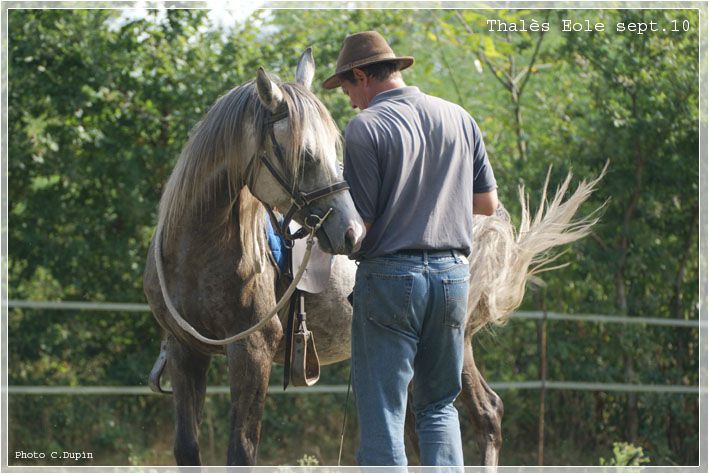 | Dire merci | Coucou, Mon T est un ange, Thalès Eole, OC arabe quelque chose..... palomino chocolat ! Il est monté.... mais je ne travaille pas le dressage, juste de la ballade et randonnée, il est très sympa, travaille reines longues, n'embarque pas et est très respectueux des actions aux jambes Au débourrage ![]() 4 séances seulement, il est vrai que je l'ai eu à 16 mois et a été beaucoup manipulé et stimulé ! Monté ![]() Au pré en plein câlins.... avec pôpa ! ![]() |