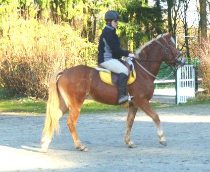 ), on commence à bosser en carrière (on faisait que de la balade pour travailler son souffle) donc pratiquement que du dressage (cercle, changement de main, arrêt-trot trot-arrêt , départ au galop, il engage bien et maintenant on essaye de lui apprendre a venir au contact de la main, il commence à le faire au pas, je suis contente