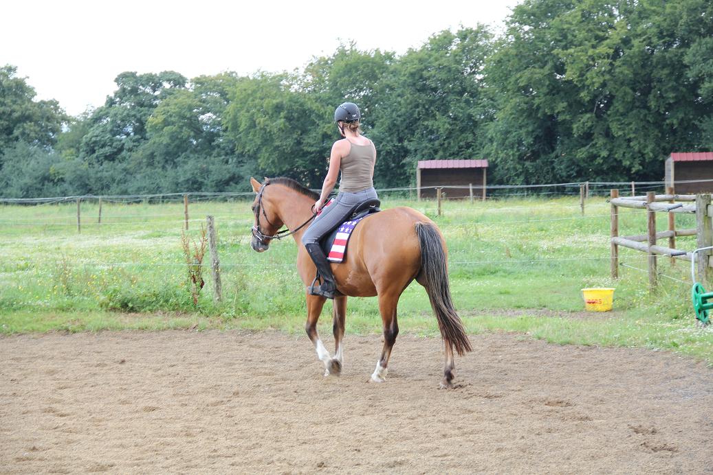 | Dire merci | Ça y est je suis en vacances depuis samedi et j'essaye de profiter un peu plus de mes chevaux! La semaine dernière je suis partie en très courte balade avec Chicane pour tester une selle. Elle avait vu l'ostéopathe depuis peu et n'avait pas le droit de galoper. Mon chéri m'accompagnait à pieds, et du coup j'étais obligée de l'attendre ou de faire demi-tour. Elle n'a pas apprécié. Elle a vu un champ de colza qui commençait à être moissonné et je l'ai vu faire les gros yeux!! Puis hop, saute mouton et elle m'a viré, moi qui testait une nouvelle selle en cuir en plus et qui n'ai pas l'habitude de ce contact (j'ai une synthétique), j'ai vite fini par terre. Sauf qu'au lieu d'être sage, elle est partie! Heureusement plus de peur que de mal, je n'ai rien et elle non plus. Nous étions proches de la maison et elle est repartie dans sa direction. Je l'ai récupéré et nous avons trotté 5 minutes histoire de ne pas rester sur quelque chose de mauvais. ![]() Avant hier balade de trois heures avec mon papa et mon chéri. Tout s'est très bien passé, elle a été plutôt zen. ![]() Et hier cours chez ma monitrice. Chicane a plutôt bien progressé dans le galop, c'est à moi de plus travailler maintenant. ![]() ![]() ![]() ![]() En revanche elle a un nouveau vice depuis deux semaines: elle ne veut plus monter dans le camion!! J'avais une rando à faire et ce jour là je n'ai jamais pu la monter. Depuis elle a compris que ça marchait alors qu'elle voyage très bien ![]() Donc cours à domicile avec le van de ma monitrice et on arrive à la faire monter de nouveau mais elle n'y va pas de bon cœur. Obligée de lui mettre le filet pour la charger pour le moment et de s'aider d'un stick mais bon elle monte... Voilà pour les news du Loir-et-Cher! |