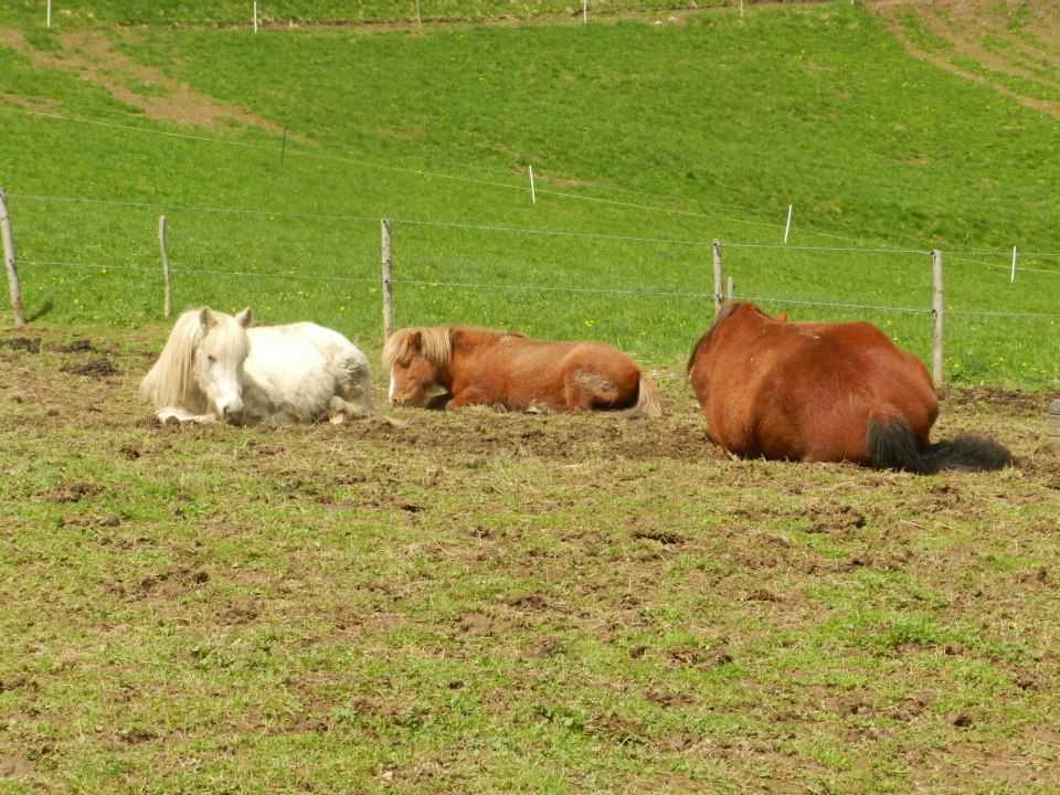 | Dire merci | Pour le reste tout le monde va bien. L'herbe commence enfin a pousser. J'aurais pu les mettre dans un pré vert ce week-end mais il est tombé des seaux d'eau et ils en annoncent encore alors en attendant tout le monde est encore au foin... J'ai juste pu leur faire goûter 1/2 heure jeudi cette belle herbe Alors la dur vie pour mes trois alias la naine, la grosse (ou la vieille ça dépend des jours) et la grande : ça mange du foin ![]() Ca goûte à la belle herbe avec les poils de la vieille que j'ai brossé pendant ce temps (ce sont les petits oiseaux qui sont contents pour faire leur nid avec tout ça )![]() Et ça dors : |