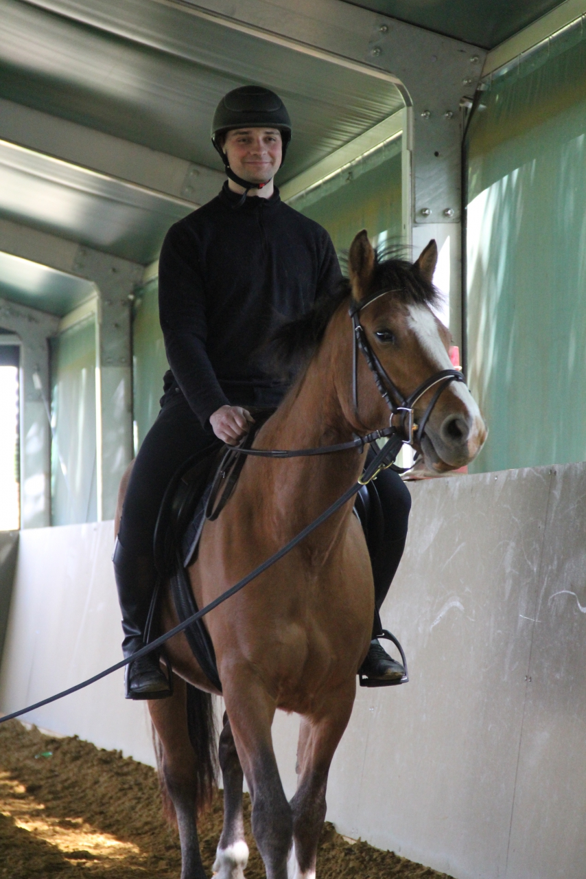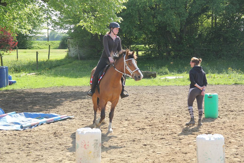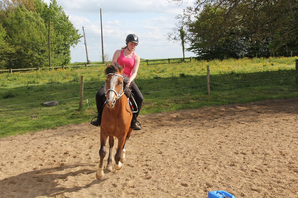 ) j'ai eu le droit à mes premiers coups de cul mais ça a été et puis sans départ pleine balle donc j'ai continué un peu au pas et une fois qu'elle était de nouveau bien calme, on est resté là-dessus. Bon j'étais quand même contente d'avoir mis une étrivière autour de l'encolure...