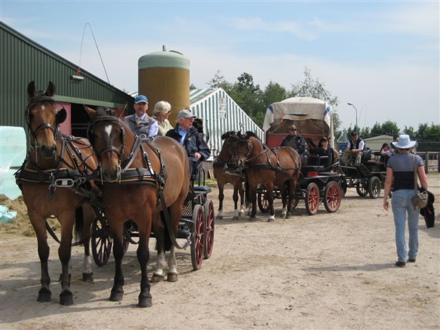 | Dire merci | Samedi prochain, je vais participer avec Evita à notre premier week-end organisé par l'association FM des Pays-Bas. Il ya un rallye à cheval ou en calèche le samedi et le dimanche, avec que des Franches-Montagnes. J'emnnène mon sulky et je suis curieuse de voir comment va se comporter Evita avec tous ses compatriotes... qui viennent tous de Suisse. Aux Pays-Bas, il y a maintenant environ 70 FM, surtout appréciés en attelage. L'association organise une fois par an ce week-end et donc pour moi ce sera l'occasion de faire connaissance avec des proprios de fm et d'échanger nos expériences. Je ferai des photos, promis... |