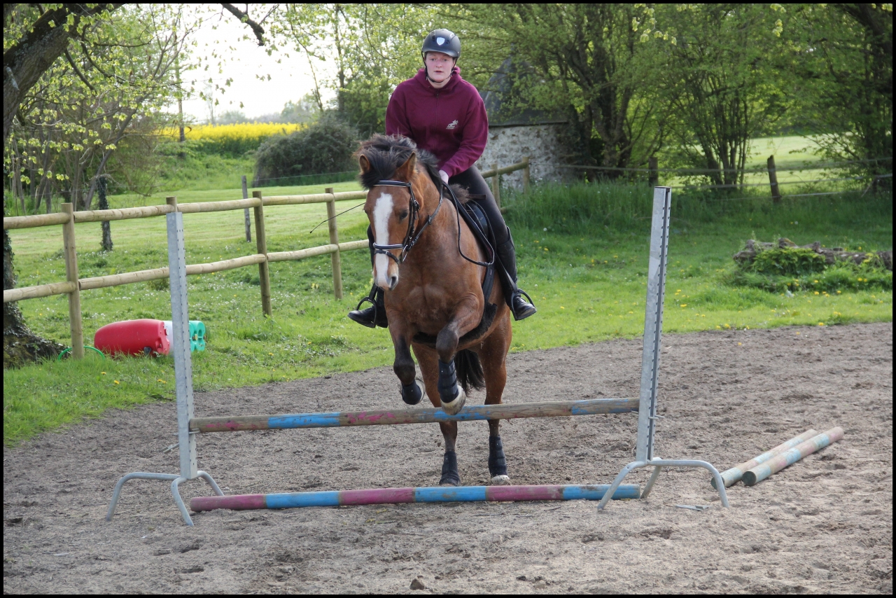 | Dire merci | laprincedu88 Chicane a l'air super mignonne dans son paddock ! Pour ma part, aujourd'hui, j'ai fait un cours de travail en main ce soir avec Nougat. Avec le licol éthologique, en l'envoyant sur le cercle, il fallait lui faire sauter un tronc. Au début, à la réception du premier saut, il a pris le galop un peu brusquement mais il a rapidement compris qu'il pouvait sauter en longe dans le calme... Voire un peu trop dans le calme puisqu'il m'a fait un saut de pied ferme ! C'est pas toujours facile de le reconnecter quand il a commencé à partir au galop et il ne faut pas le lâcher sinon, il faut attendre 10-15 minutes qu'il se fatigue un peu à force de galoper plein c*l dans la carrière !! |