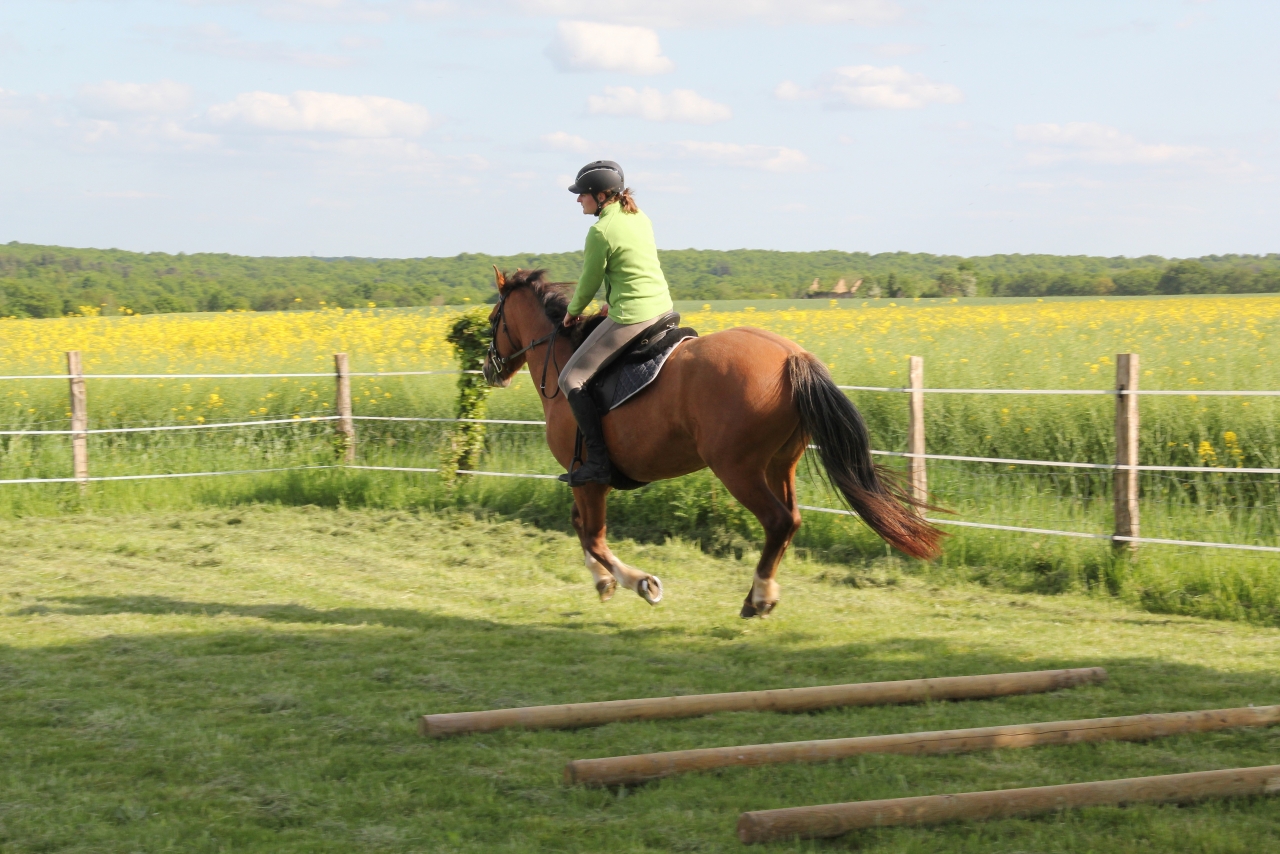 | Dire merci | Sympa à cru!! Moi je suis une vraie brêle rien que sans les étriers sur Chicane... autant sur ma Fjord je suis hyper bien calée mais sur elle j'ai l'impression que je vais tomber!! |