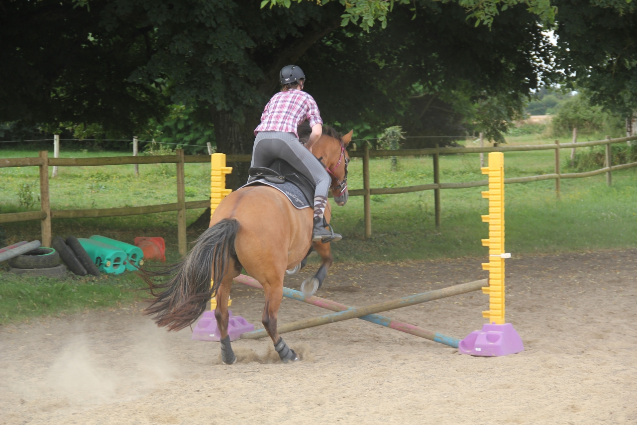 | Dire merci | De mon côté je ne suis pas très régulière et je suis à chaque fois obligée de remonter le poste pour me souvenir de ce que j'ai raconté ou pas!! Dernièrement nous avons repris le travail chez ma mono après un arrêt de plusieurs semaines. Chichi n'est pas restée sans travail mais on a fait autre chose. Nous avons attaqué par une séance de saut sur des petits dispositifs dans le but d'enchaîner, de contrôler la direction ainsi que l'amplitude. Elle était plutôt calme; d'habitude elle s'agite un peu en passant les obstacles. Entre les obstacles elle a tendance à repasser au trot car mes gestes sont contradictoires: je la redresse avec mes mains mais n'entretiens pas le galop avec les jambes, c'est donc à travailler. Nous avons terminé par un contre-bas devant lequel elle a décidé de bloquer; Après plusieurs essais elle y allait de mieux en mieux mais elle ne bondit pas encore dans le vide. ![]() ![]() Hier, nous participions à une Equiloisirs (toujours une sorte d'Equifun, sur un parcours chronométré). Chicane est passée sur pas mal de dispositifs. En revanche, elle a bloqué sur le rideau, le gué (rempli de bouteilles fluo) et le sautant qu'elle n'a pas fait du premier coup. En revanche, et c'est LA SURPRISE: premier franchissement de la planche à bascule et aucune hésitation, je suis très fière d'elle! Nous terminons avec 80/100. Vous remarquerez que je l'avais mise aux couleurs Suisses! ![]() ![]() ![]() ![]() Dimanche, nouveau stage de TREC avant notre premier concours du 11/09 si tout se passe bien ![]() |