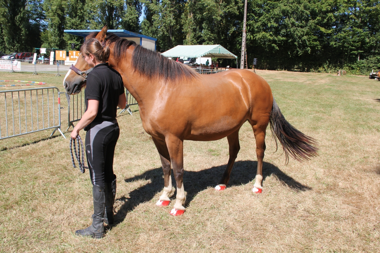 | Dire merci | Hello, les fmeuses ! Dis donc ça piplette ici ! Youpi les vacances pour Nounougat ! Salsa : ça y est Hauser fait un pas dans la cour des grands ! Jarpur, j’aime beaucoup la nouvelle coupe de Cobra ! et quelle ligne ! ahhhh ça me rappelle des bons souvenirs, ou Jolinar avait aussi cette ligne ! lol Pour l’histoire des crins rasés en concours, il me semble aussi que c'est pour faciliter le travail des juges pour juger la morpho des chevaux… Mounia, tu remontes fifi alors ? t’as trouvé la selle de tes rêves ? Bigouden, trop chouette le grand rassemblement d’attelage ! y a pas ce genre de trucs par ici…. snif Marie74, j’ai été beaucoup de fois à Saignélégier. Pas besoin de tribunes payantes… tu vois bien même en étant sur l’herbe. Pour y aller une journée entière, tu as amplement le temps de tout voir mais ça dépend de ce qui t’intéresse car tous les jours, le programme n’est pas le même Je rejoins, l’avis de LE Pex concernant les températures ! prévoyez un duvet et des vestes chaudes si le temps tourne et des bottes de pluie !! le marché concours, c’est la bouillasse avec la pluie !!! Dilou, comment va Fanny ? La prince, comme je t’envie pour la plage !!! j’aimerai trop y aller aussi avec jolinar ! les galops sur la plage ça doit être top ! Bon sinon de mon côté, rien de neuf… ou plein de neuf… lol Après une belle lymphangite sur un postérieur du a une blessure qu'elle s'est faite seule en passant sous un fil , ma morue a eu un gros soucis de pieds… sabot antérieur gauche. Une fissure horizontale s’est installée, puis une deuxième et toute la paroi externe a du être enlevée pour éviter une merde… résine et plaques en silicone pour réparer le tout et roule ma poule ! sauf que ça a de nouveau pété, les trous des fers ont explosés et ma miss s’est arraché le fer qui est parti avec la résine, le silicone et un morceau de pied… (et puis évidemment impossible de retrouver ce foutu fer avec la résine qui aurait pu être remise par le MF) (et qui d'ailleurs coute un bras d'autant plus que mon MF vient de s'installer en suisse et a donc remis ses tarifs aux prix suisses juste avant le soucis de pieds de jo - ça ne serait pas drôle sinon : re )... ça a été limite pour que le MF puisse remettre un fer. Si elle le perd encore, ça sera déferrage car pied trop court et trop abimé… ![]() Donc je ne monte pas beaucoup car je suis flippée quelle s’arrache encore ce fer. Elle a des cloches 24h/24h. et donc elle fait du gras au pré. J’ai aussi laissé tomber le fait de tenter de la mettre au régime, car c’est un échec total. Soit elle vire son panier + licol greenguard au bout de 30 minutes, soit Houdini-Jo change de pré toute seule… ![]() de toute façon avec cette chaleur, je pense que l’herbe n’est plus aussi nutritive qu’au printemps et commence à devenir jaune…. Ouf !!! ![]() J’ai quand même fait une belle ballade dimanche avec des copines, elle était extra !! on s’est fait un méga lâcher au galop et wouaw elle en a sous le capot quand elle veut bien… |