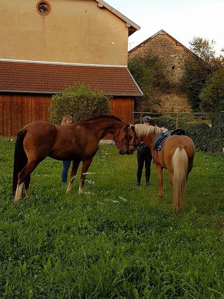 | Dire merci | Bah en trainant sur le forum sur de vieux post côté TREC...Oui c'était chez les Desalmand qu'on bossait dans leur carrière. Bah je faisais : - 45 min de route le matin pour aller au boulot sur Thonon. - Puis 45 min de Thonon à Scientrier le soir pour la bosser (normalement le gars devait s'en occuper et je pensais ne pas y aller tous les jours de la semaine mais il s'est pété la main donc il m'a coaché...). - Puis 1h de route le soir pour rentrer chez moi depuis Scientrier (je rentrais en passant par Viuz, Mieussy, Taninges puis Les Gets) Ca me faisait un peu faire le tour d'un bout de la Haute-Savoie .Bah elle l'était... Je l'avais ferrée des antérieurs l'année dernière quand on a commencé à bosser pour le TET. Quand je les mise en pension cette hiver j'ai ferré des 4. Puis ce printemps j'ai voulu laissé que les antérieurs mais elle se les arrache dans son pré . Alors là elle est déferrée depuis 2 semaines. Je vais regarder pour lui acheter des hippo |