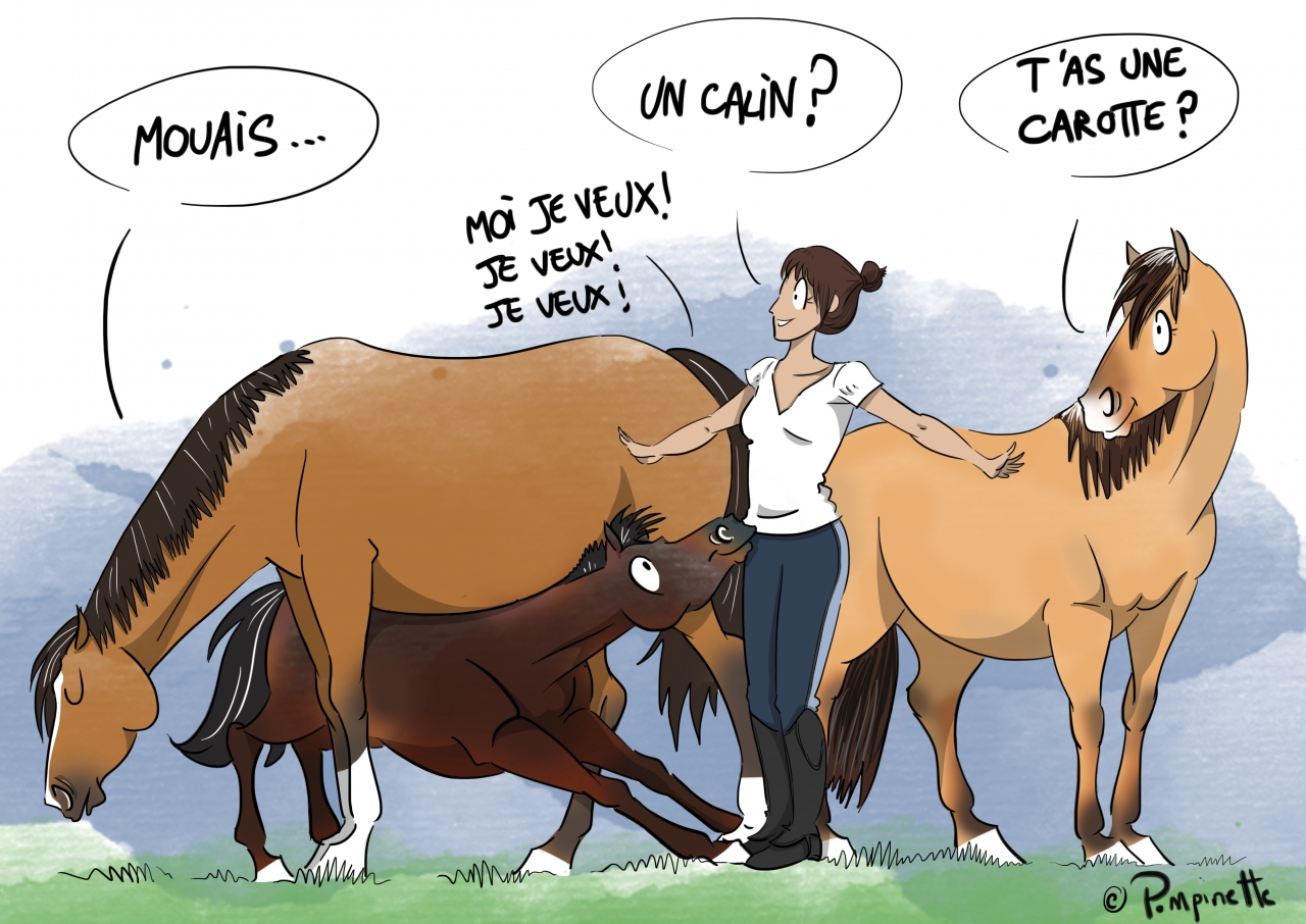 | Dire merci | l'éthologue m'a conseillé de lui donner dorénavant des objectifs. Pour qu'elle comprenne ce qu'elle fait et qu'elle puisse y participer. Ah oui, ça c'est particulièrement utile pour nos FM, j'ai l'impression ! Pour en tirer le meilleur il faut avoir leur collaboration, pas leur soumission. Ils sont intelligents, ils veulent comprendre. Toujours bien active laprincedu88 ! Il est super ce dessin Pour ma part j'ai repris les cours avec Fany, avec une nouvelle prof que j'apprécie. Fany est toujours bien coopérative : je crois que le travail l'amuse, en fait. A condition que ce ne soit pas trop répétitif , la miss s'ennuie assez vite. J'ai particulièrement aimé le travail de variation dans l'allure, au pas, puis au trot; une fois qu'elle a saisi l'exercice, je la sentais super attentive pour allonger ou raccourcir à la première demande. Et la prof a dit qu'on semblait vraiment bien s'entendre ![]() |