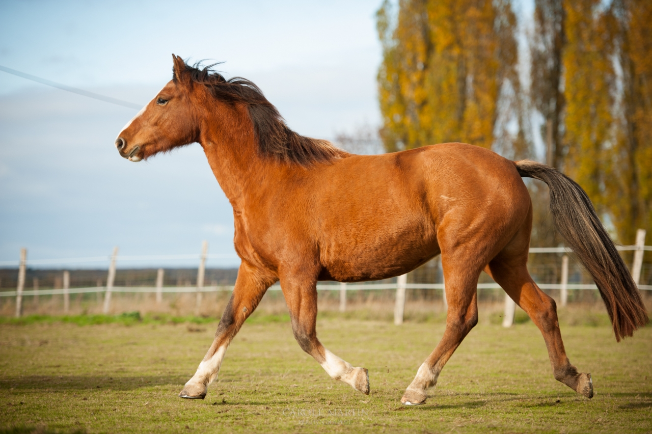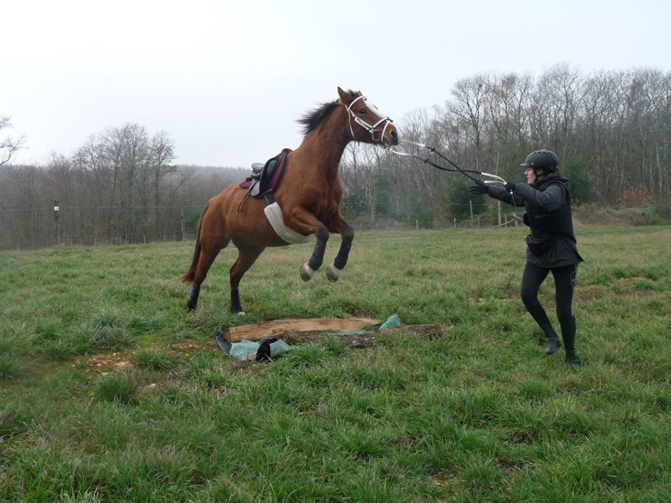 | Dire merci | jarpur , Super si vous progressez régulièrement! C'est ça qui compte. Et les réflexions des autres on s'en fou effectivement! Le travail à pied est très important. Je regrette pour ma part de ne pas m'y être penchée plus tôt et que ça ne m'intéresse pas plus que ça. Du coup tu vas la laisser ferrée? Je possède Chicane depuis Avril 2014. Elle a passé les 10 premiers jours en France chez ma monitrice le temps qu'on apprenne à se connaître, d'autant plus que je manque énormément de confiance en moi et que sans ça j'aurais pris mes jambes à mon cou. Je ne faisais pas la fière. Avant ça j'avais ma Fjord depuis plus de 15 ans en qui j'avais une entière confiance et qui était calme en toutes circonstances. Chicane quant à elle avait du jus, était jeune. Elle s'est blessée au jarret l'été 2014 parce qu'Indra a décidé de la latter bien contre la clôture et il restait un barbelé des anciens propriétaites coincés dans un roncier...bref, je te laisse imaginer la suite...plaie ouverte, vue trop tard pour recoudre, soins par moi-meme pendant 2 jours avant de capituler et d'appeler le véto...quelques erreurs qui ont prolongé sa période d'arrêt, environ deux mois. Le travail n'a donc réellement commencé qu'en Septembre 2014, une fois que j'ai eu acheté mon premier camion afin de me rendre chez ma monitrice (40min de route). Je prends environ 2 cours par mois. Le travail est réellement diversifié depuis Janvier 2016 avec tous les stages auxquels j'ai participé, avant cela c'était juste cours et balades en groupe. Depuis cette année on teste le TREC, les balades seules, qualifications loisirs, rallyes, Equifun, endurance. Je souhaite qu'elle touche à tout car je ne veux pas être douée dans une discipline en particulier, je veux me faire plaisir et qu'elle soit surtout sûre et polyvalente. Elle est volontaire mais on a encore du boulot ^^ |