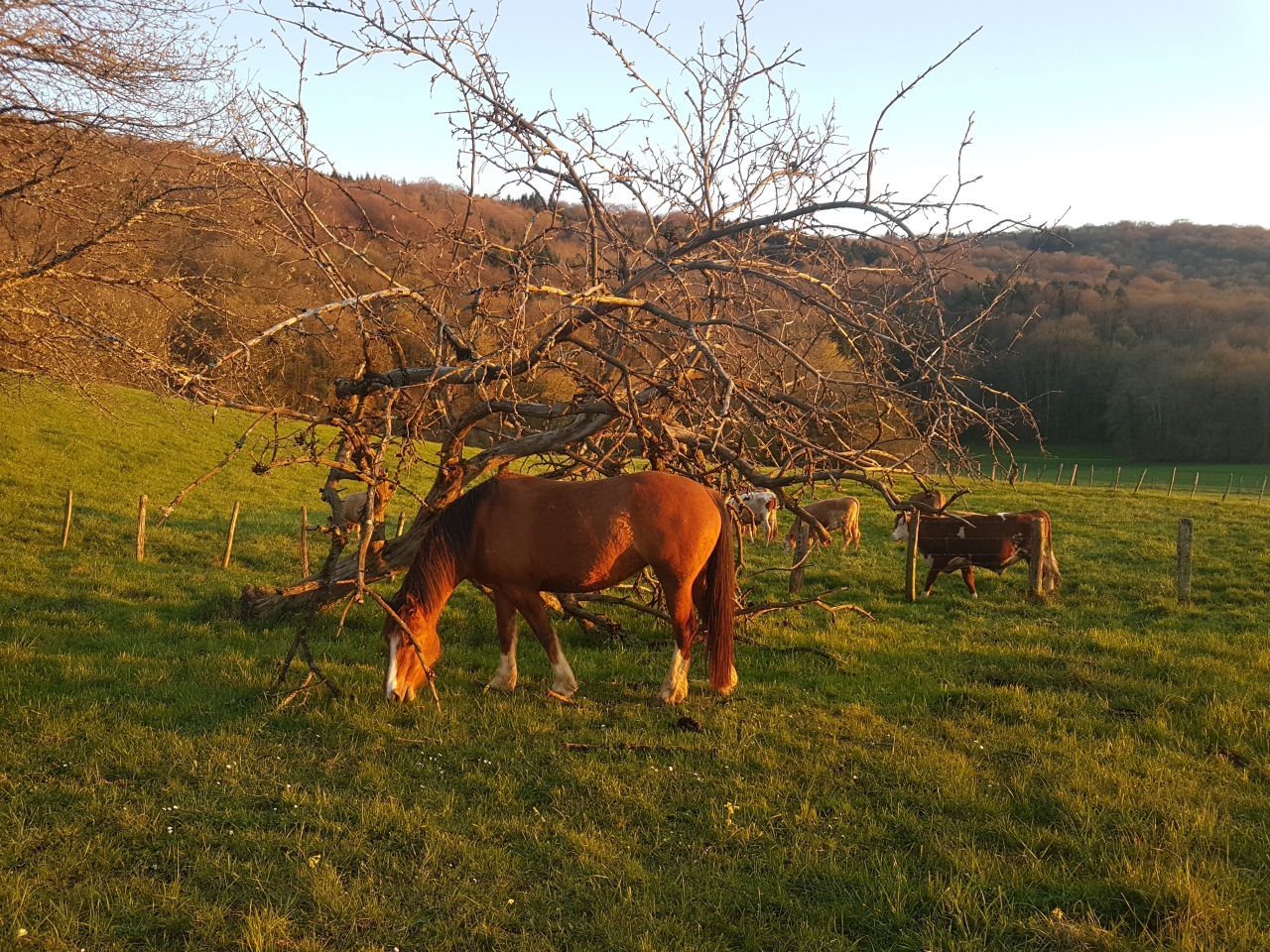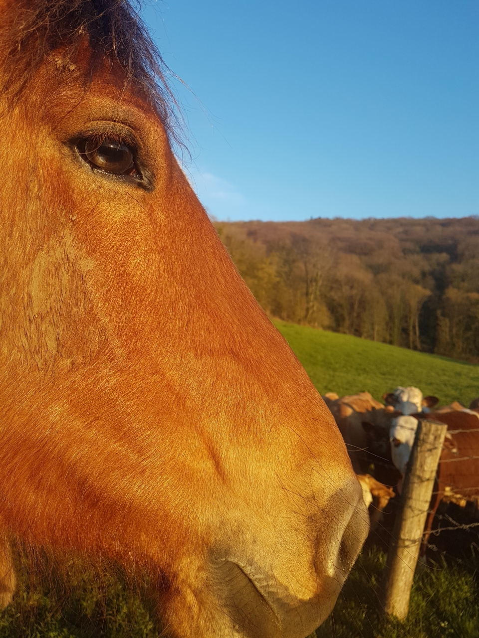 | Dire merci | J'avais chuté d'Hauser au montoir y'a peut être 2 mois et hier je suis enfin remonté dessus! J'ai encore beaucoup beaucoup d'appréhension, mais je suis bien encadrée! Il a vraiment été très mignon. Maintenant c'est à moi de redevenir zen...mais plus on vieillit, plus c'est difficile! Et puis j'ai interdiction formelle de me blesser, histoire de ne pas mettre mon associé/mari dans la grosse mer** avec nos vaches... Bon, il paraît qu'il est trop gras... Le FM c'est définitivement pas la race qu'il fallait vu l'herbe qu'il y a à la maison! ![]() |