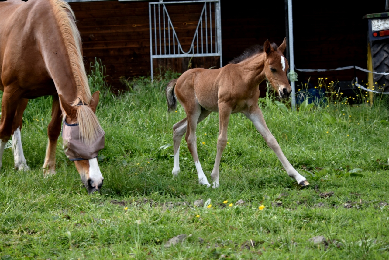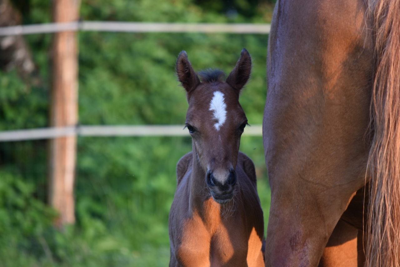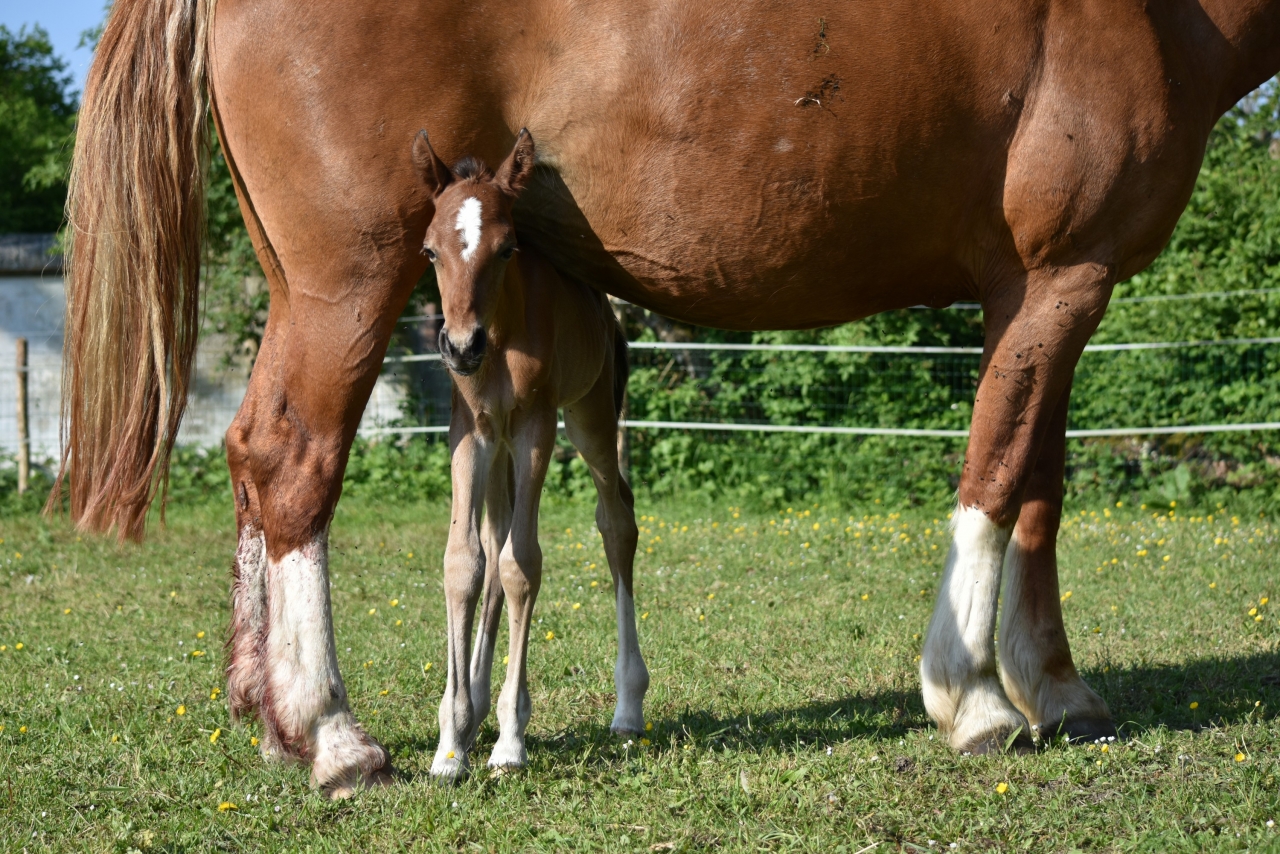 | Dire merci | Itune né le 05 mais 2018 à 22h50 par Lorette Franches Montagnes et Shalam de Brisal pur sang arabe![]() ![]() ![]() Lorie est une mère exceptionnelle et une laitière hors pair et je suis très contente du croisement. ![]() |