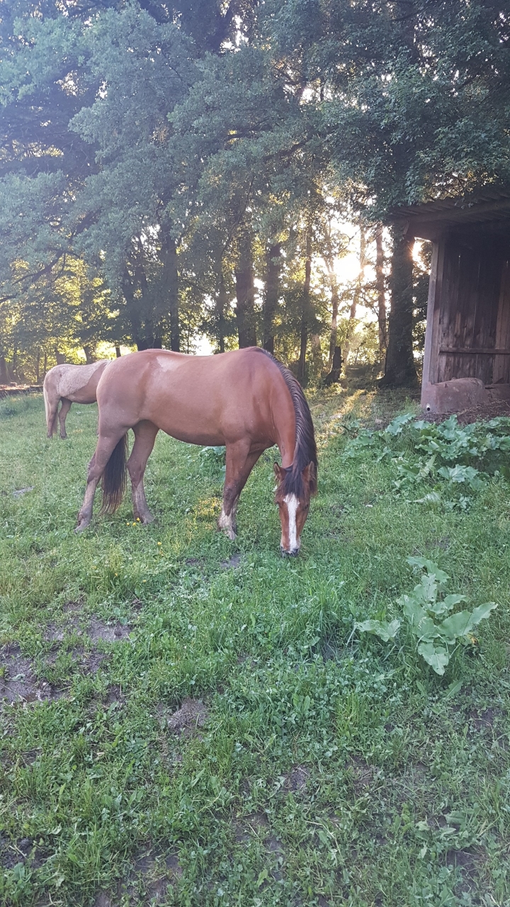 | Dire merci | Il est superbe Itune! Hauser a eu 4 ans y'a quelques jours. ça va il n'est pas surmené! On était sur une bonne lancée, j'allais 2 fois par semaine prendre des cours ou stage avec lui. Et j'ai ralenti cause travaux dans les champs puis épidémie de rhino. Toute la cavalerie à l'écurie a été vaccinée, les miens à la maison aussi (rappel hier), donc normalement j'aurai le droit d'y retourner avec Hauser. photo lors d'un stage de ptv en main. Niveau franchise il assure! ![]() et photo du jour de ses 4 ans! ![]() |
