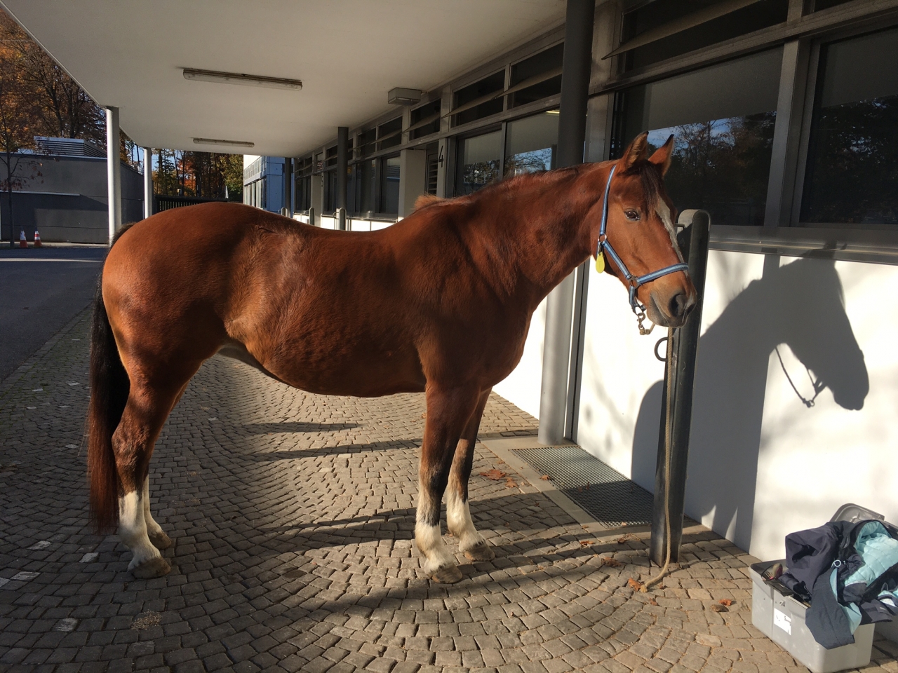 mais 2 personnes expérimentées des chevaux récalcitrants m'ont prêté main forte : 2 longes au q - Jo a pigé que son cinéma de rentrer/sortir ne servirait à rien. elle a tenté de reculer 2x, s'est faite engueuler en suisse-allemand par mon chéri
