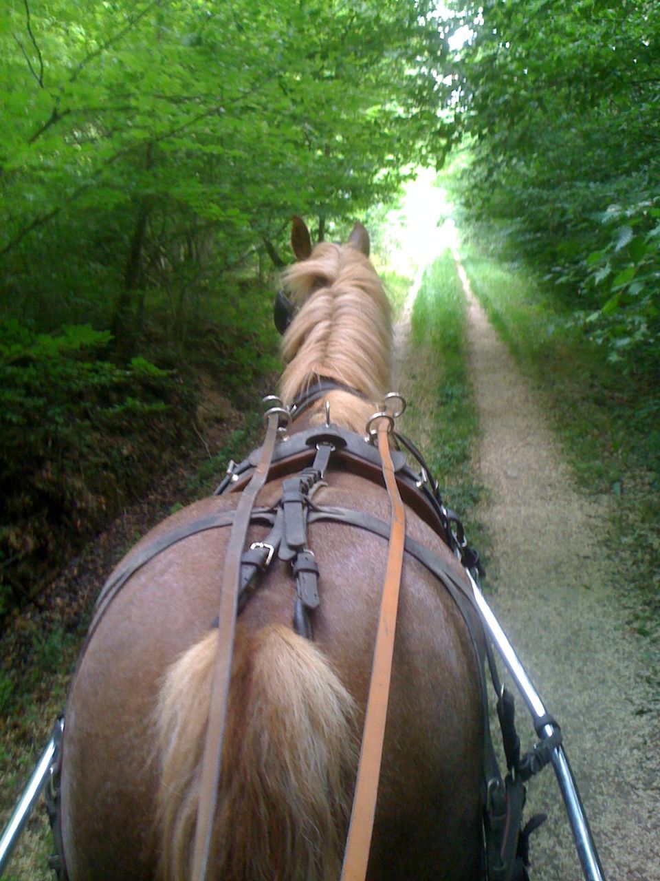 | Dire merci | ca fait envie tout ca!! joli paysage! Moi Volga a fait beaucoup de chose ces derniers temps!! elle a profité du concours de Quenotte pour faire un tour dans le grand camion, bon forcement au concours elle denotait ( orth?) un peu! Je lai emmener car derrière le concours il y a un grand parc avec arcours de cross, Mme a sauté 2 contre haut, 2 contre bas, un fossé, 2 tronc et des tonneau, relativement facilement!! Hier re ballade attelé, trop bien, deja j'ai trouvé THE mors, un pelham caoutchouc, la jument a ete super le travail monté paye enbfin, ronde, tendu, souple , , j'ai fait 2 petit galop, et le top une legère incurvation et le mot galop ca marche je parts sur le pied que je veux! photo le prochain coups! |