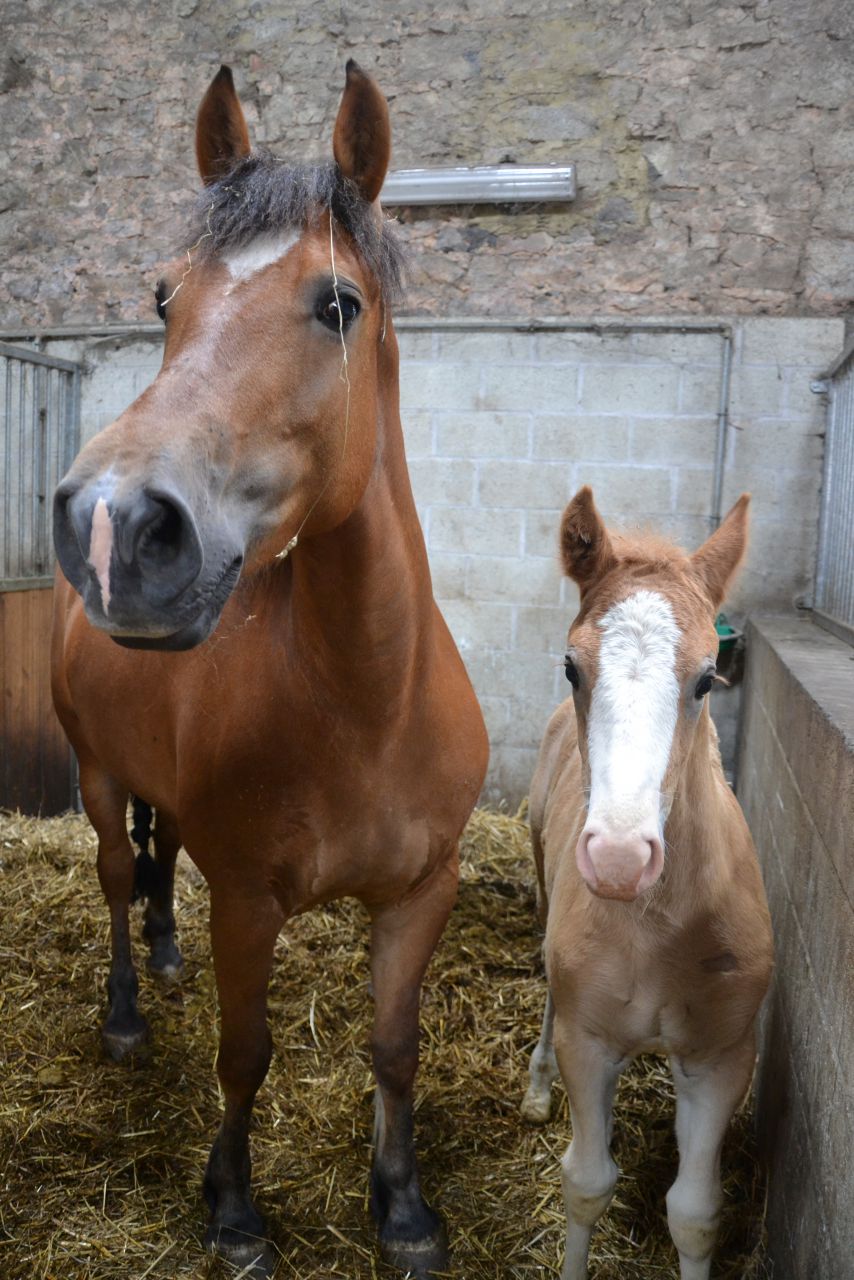 | Dire merci | J'ai une petite énigme pour vous concernant une pouliche FM.. Alors voila, la mère de la pouliche est arrivée au haras pour une saillie de l'étalon FM. La mère est baie, le père aussi je pense (à confimer) et elle est arrivée avec une pouliche super claire avec la peau du nez rose, les crins blancs et une grande liste blanche.. ![]() Alors je ne sais pas si elle est palo, crème ou tout simplement alezane mais c'est pas du tout commun ![]() Je pense a faire des photos de la petites demain pour vous poster ca |