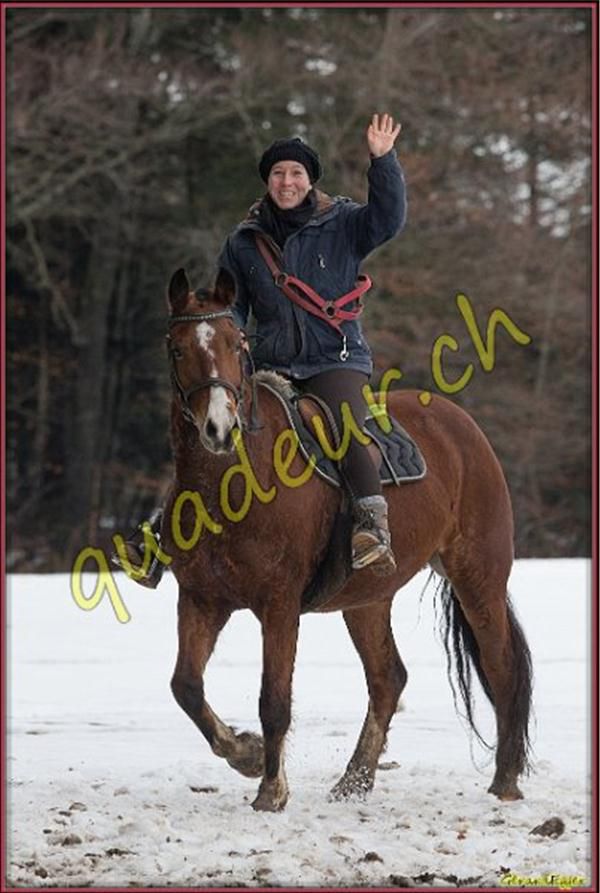 | Dire merci | Dans la neige trop beau La perle suisse toise 1,56m elle parait grande parcequ'elle dégage beaucoup de carisme et qu'elle est très bien sorti de devant... |
