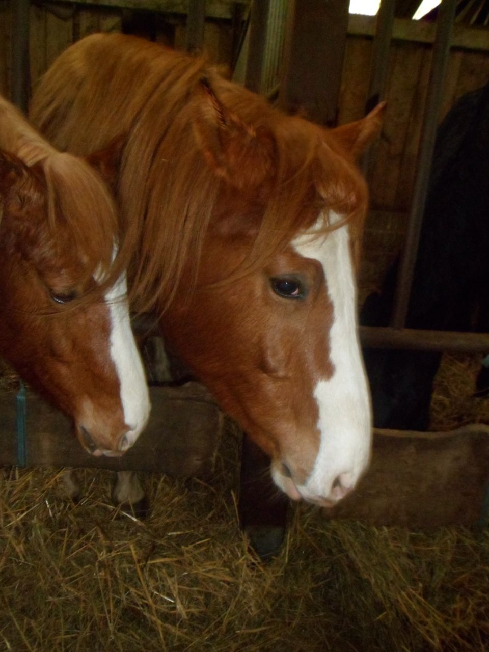 | Dire merci | Felicitations pour cette acquisition! Bonne route à vous deux! Tu n'aurais pas une photo de sa mère? La neige a fondu ici et la boue est de retour. Pfff, drôle de temps avec soleil-pluie-grêles tout dans une même demi-heure. Toupie est la plupart du temps adorable (genre elle arrive en hénissant et au trot/galop quand je vais la chercher en pature), parfois j'en ferais bien de la saucisse... Je suis vraiment contente de la pension où elle se trouve, c'est une écurie de trotteurs à la base, ils font aussi des pensions, des débourrages monté et attelé etc. Elle a un immense box, elle est sortie tous les jours en grande pature, le proprio de la pension est sympa et semble super patient (pour les pieds, mon maréchal aurait déjà foutu quelques bonnes baffes mais lui il a fini dans le calme) Miss est actuellement en chaleurs, quelle pisseuse. Elle amoureuse raide dingue de son voisin d'en face, un jeune entier sf qui est là pour un débourrage. "alors on a déjà organisé des rallyes, randos ou tout simplement rencontres entre FMeurs" attendez encore 2-3 ans, je viendrez avec! ![]() |