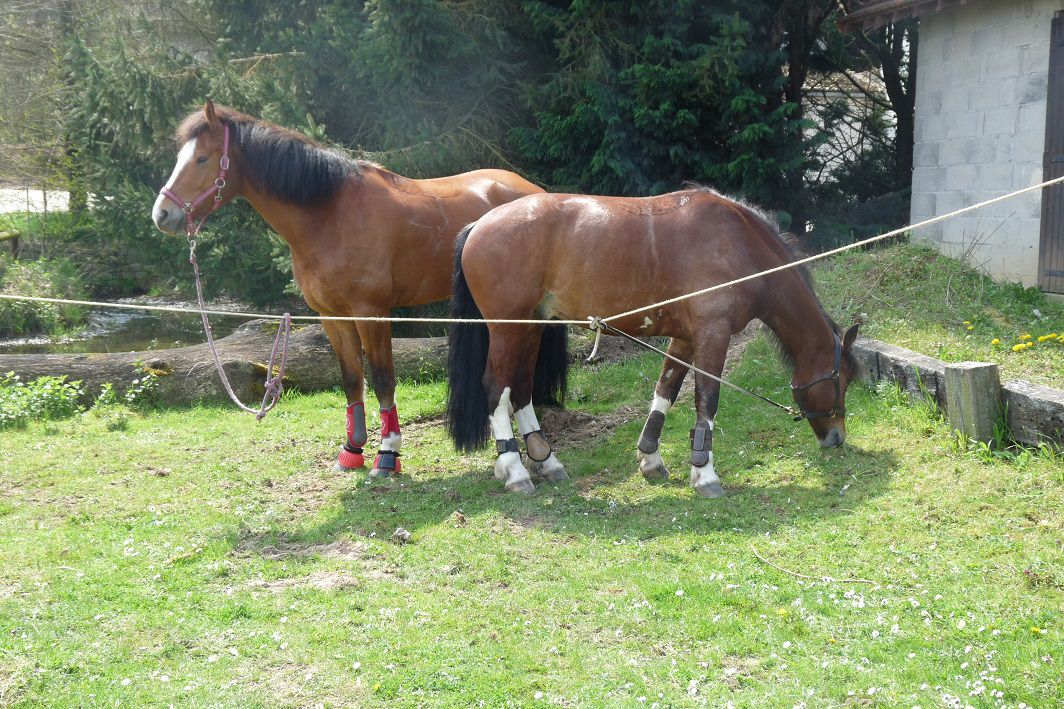 | Dire merci | Oui c'est bien ça Dilou : les papiers définitifs ont les obtiens à 3 ans après avoir réussi les tests en terrains mais pour pouvoir les passer, il faut déjà que le poulain est passé les tests à 3 ans. Je compte aller aux tests à Megève qui sont organisé le premier week-end d'août pour justement voir comment ça se passe. Sinon, le règlement est disponible sur le site de l'association franche-montagne de France Lien J'espère aussi me faire des contacts parce que je ne pourrais pas présenter la mienne le moment venue : côté équitation ça va mais côté attelage je suis une débutante... Jolinar : la Suisse n'est pas loin, Morzine à même une frontière avec la Suisse (le Valais) par le col de cou mais il faut prendre ses jambes pour la passer (au lieu de la contrebande il y a une quarantaine d'année). J'adore comment ta Djoe saute surtout ne pas trop en faire ![]() Et sinon il doit y avoir de chouette balade dans ton coin ? Tu arrives à prendre tes repères ? Tu vas te promener avec d'autres pour qu'ils te fassent découvrir ? Et des photo de la juju qui m'a fait avoir le coup de foudre pour la race : ![]() ![]() Pour le reste je suis vraiment désespérée avec ce temps J'en peux plus En plus j'ai du remettre ma ponette au box parce qu'elle est en train de me faire une fourbure, alors j'ai ramené les deux vers la maison. La petite reste sage. C'est encore ma ponette qui a été 15 ans toute seule qui n'arrête pas de l'appeler dès qu'elle ne la voit plus. Ca fait comme toi Jo : ça m'énerve aussi quand elle fait ça alors que la petite reste cool |