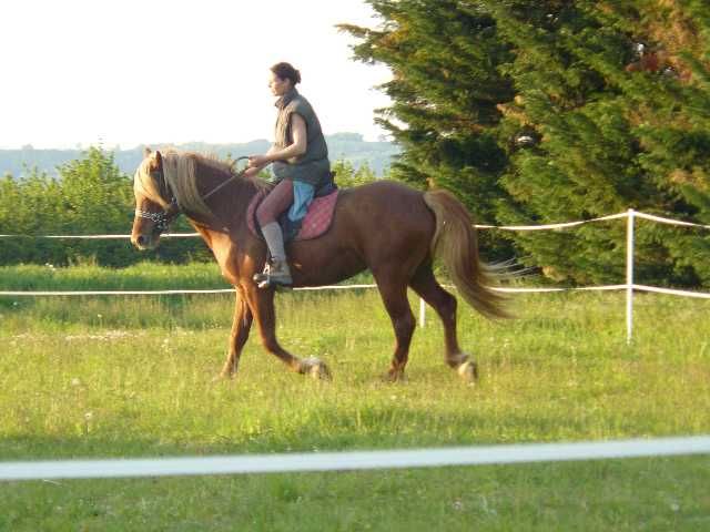 | Dire merci | L'haflo de ma soeur, PSAr du père et Haflinger de mère, il prend 3 ans cette année:![]() ![]() ![]() niveau caractère il est un peu collant , à cheval il n'a peur de rien, on a déjà fait quelques longues balades. allures et morpho (globale) de l'arabe mais le caractère du haflinger par moments, puissant mais pas brute pour un sous (premier galop sans problèmes, sans coup de cul, sans écart et arrêt au woooow ...). une crème de poney (il dépassera pas le m45) |