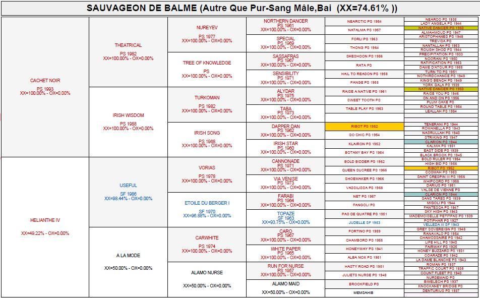 | imbreed c'est la consanguinité en fait ... tu as le nom du cheval et la ou les génération on il apparait pour le tien on retrouve Ribot à la 5ème et 6ème génération (le numéro 1 devant son nom c'est parce que c'est lui qui revient le plus !!)