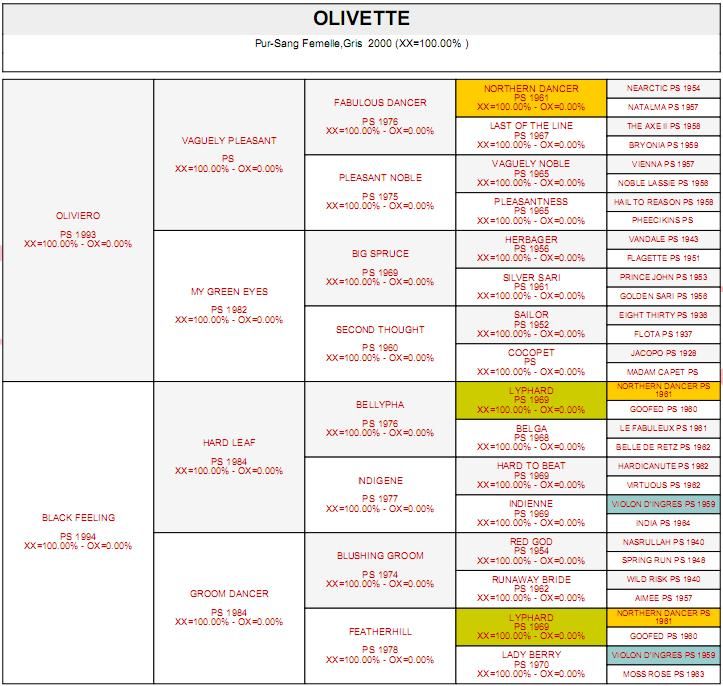 | Dire merci | Coucou, avec vos histoires, j'ai regardé un peu la généalogie de ma jument. Connaissez vous certains de ces noms? fabulous dancer usa 1976 vaguely pleasant fr 1982 PLEASANT NOBLE USA 1975 oliviero fr 1993 BIG SPRUCE USA 1969 MY GREEN EYES USA 1982 SECOND THOUGHT USA 1960 Bellypha ire 1976 hard leaf fr 1984 indigene fr 1977 BLACK FEELING FR 1994 groom dancer usa 1984 FETCHING FR 1990 TEARING GB 1980 désolée si je pollue Ma jument se nomme Olivette, le papa Oliviero et la maman black feeling. Voilà merci bien, le tableau m'interesse mais pas moyen de me connecter au site |