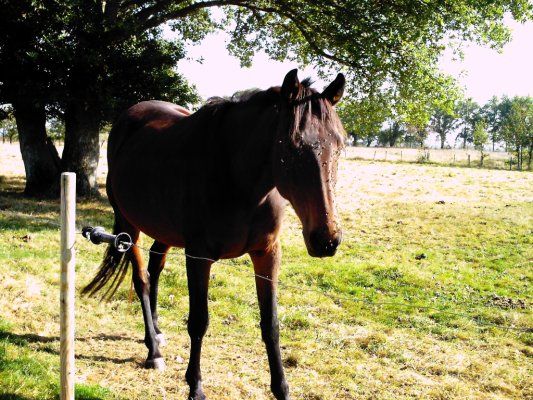 | Dire merci | Elle m'en a fait voir... je l'ai acheté dans un élévage de PS pour le steeple chase. Elle n'avait pas été bonne a l'entrainement, on lui avait donc fait faire une pouliche et ensuite elle m'a été vendue apres le sevrage a 5 ans. Je l'ai recupéré avec les mamelles pleines de lait et je l'ai ramené en region parisienne pour la mettre en box, elle qui passait sa vie dehors. Ca a duré 3 ans, tous les jours je m'en suis occupé pour la sortir le plus possible et au début ca a été tres dur. Elle était sauvage et ne pardonnait rien. meme encore maintenant....Depuis le printemps elle est a 50 kms de paris, au pré et elle est heureuse et moi aussi de la voir comme ca |