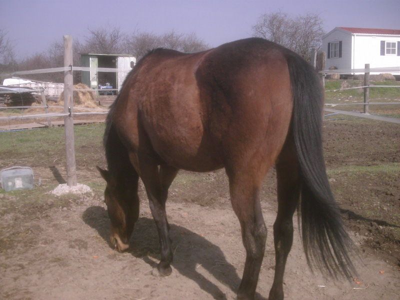 | Dire merci | 23 ans c'est une ancienne poulinière je l'ai acheté en 2007 elle avait 20 ans son éleveuse ma dit qu'elle a jamais réussi a la faire grossir meme étant pleine l'année dernière j'y suis bien arrivé mais la cette année une horreur |
